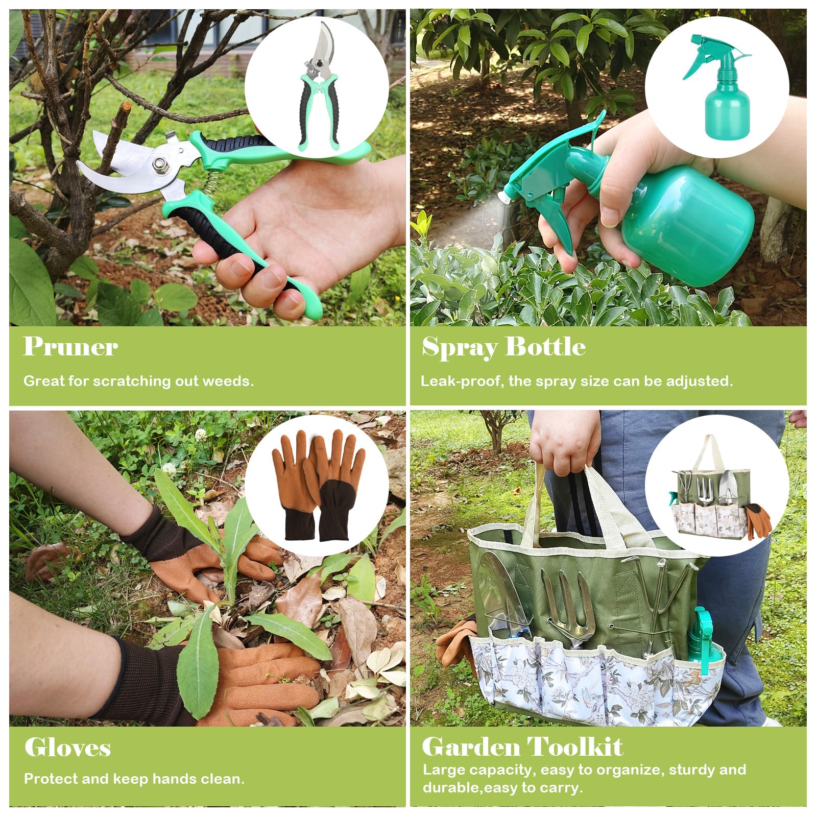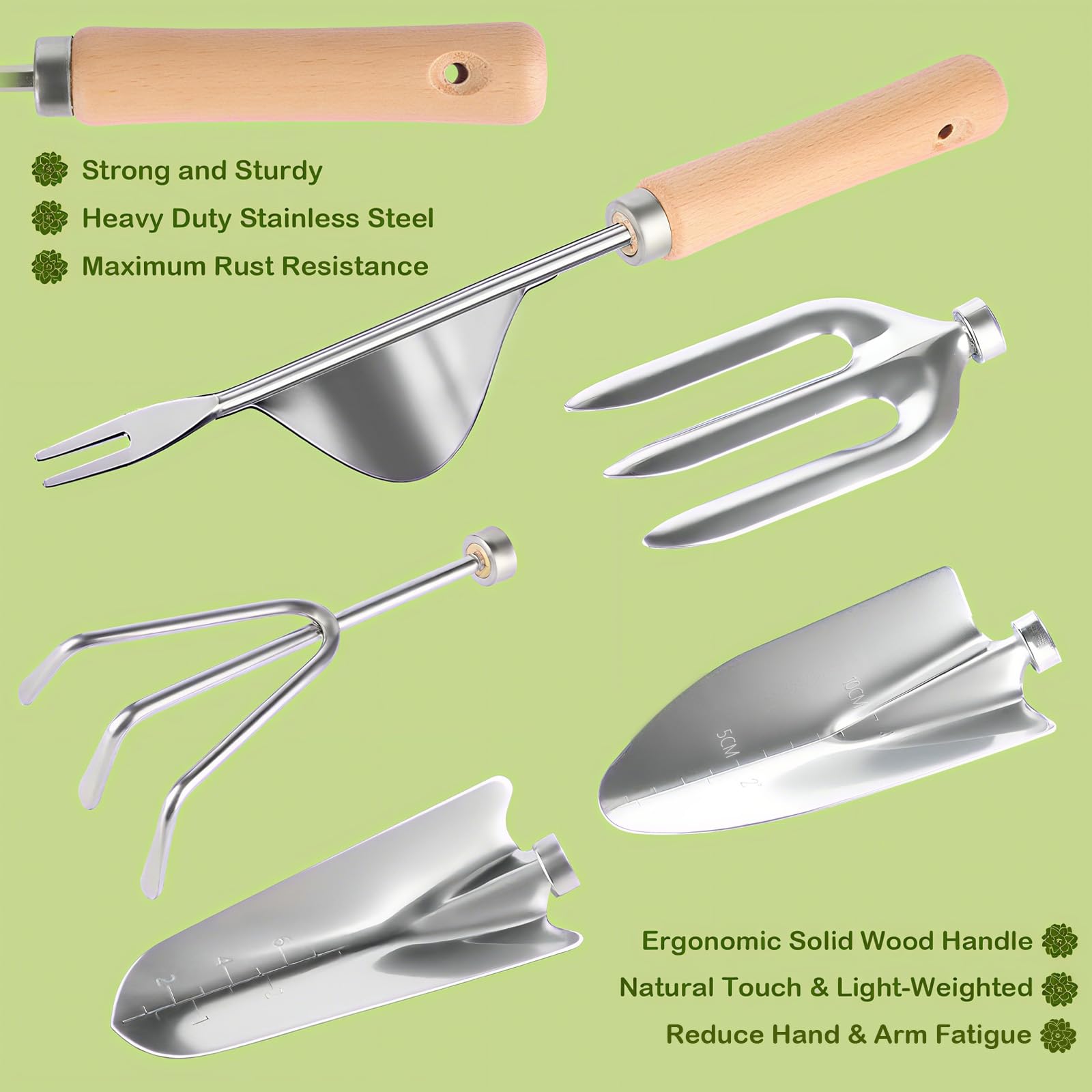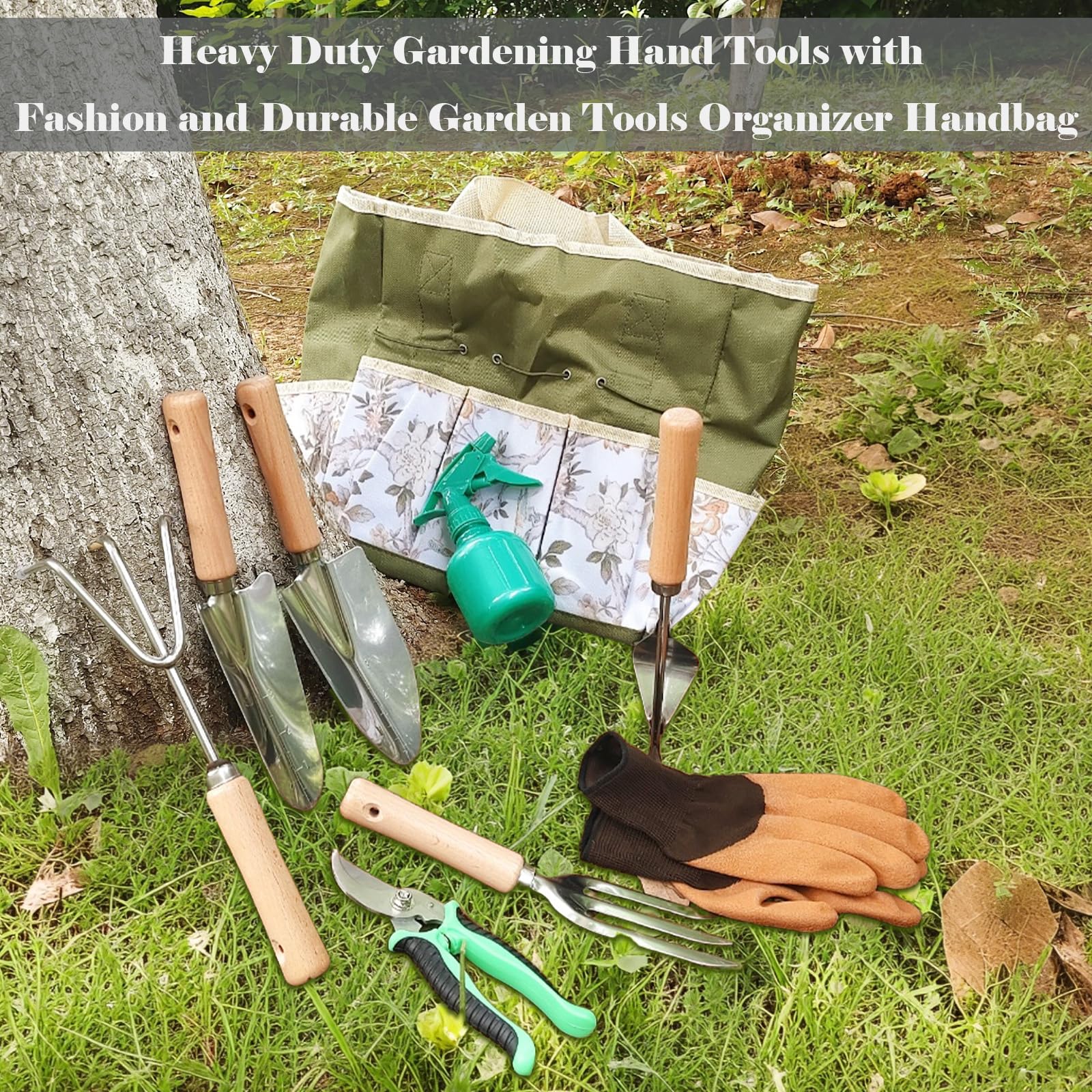 12-Piece Heavy Duty Stainless Steel Gardening Tools Kit with Storage Organizer Handbag & Tool Apron - All-in-One Premium Garden Gift Set for Women/Men