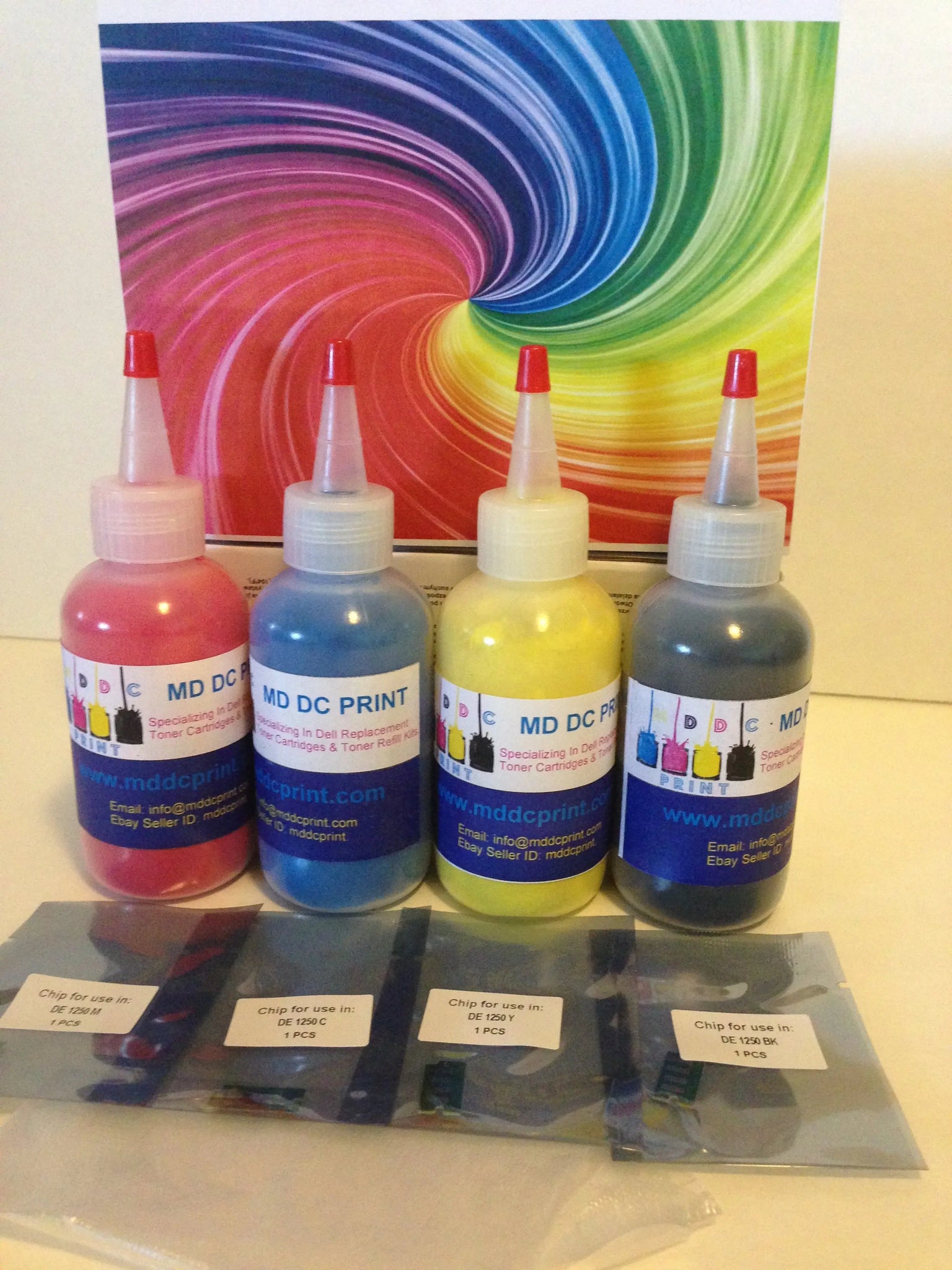 - 4 Colors-Toner Refill Kit + 4 Chips
