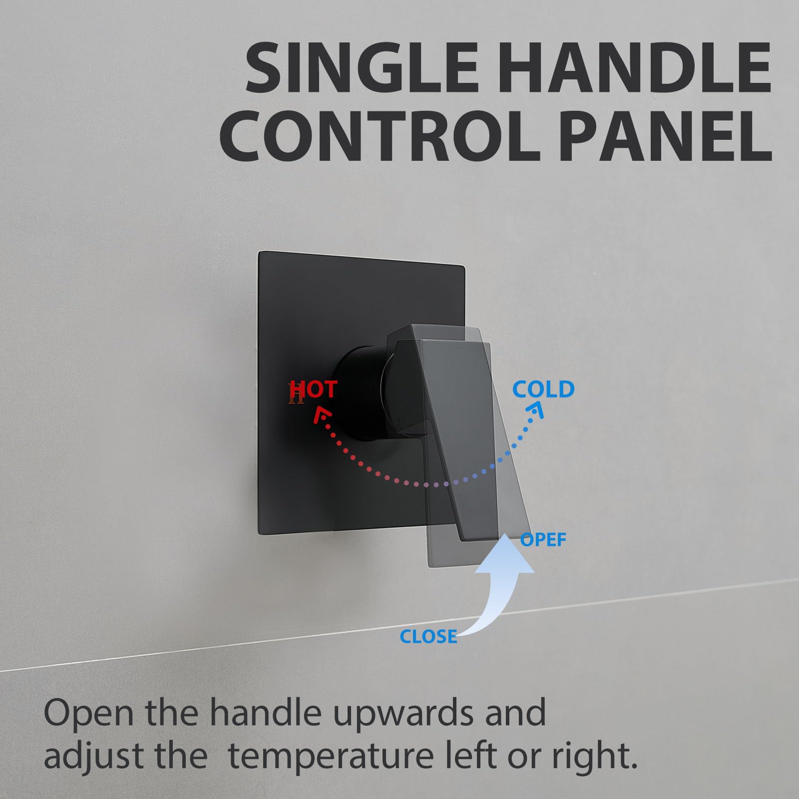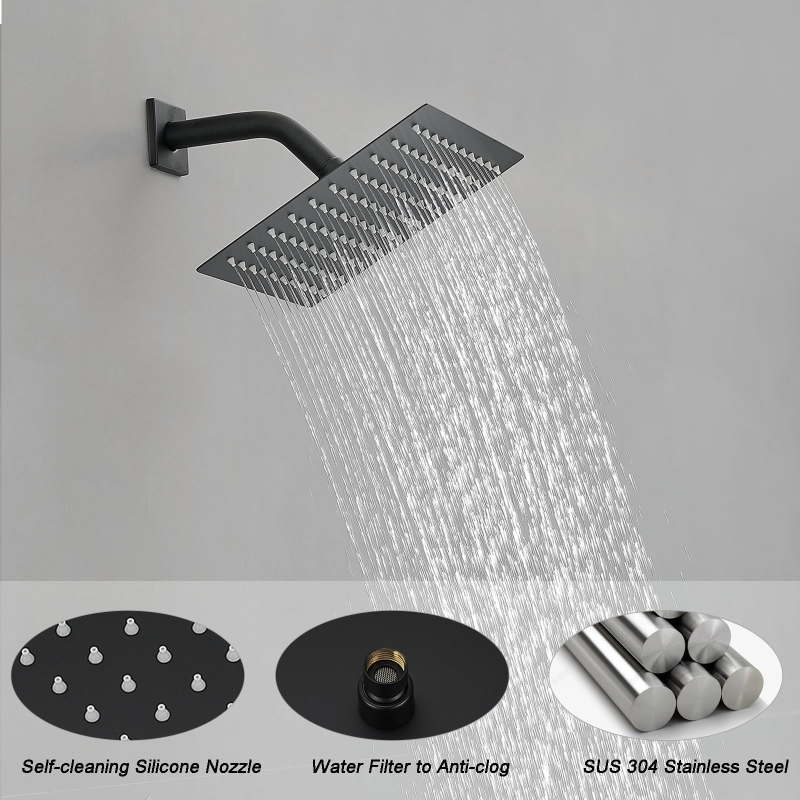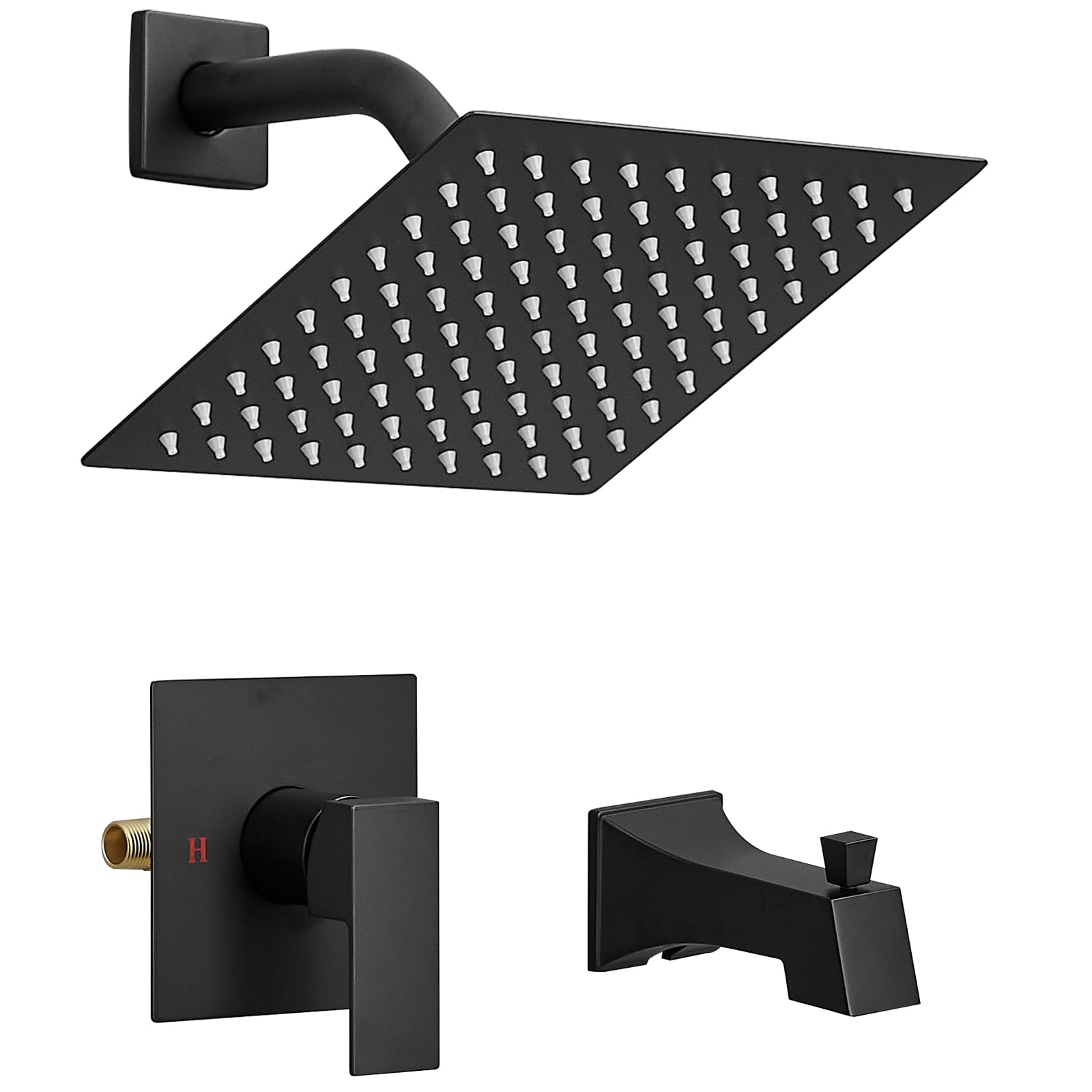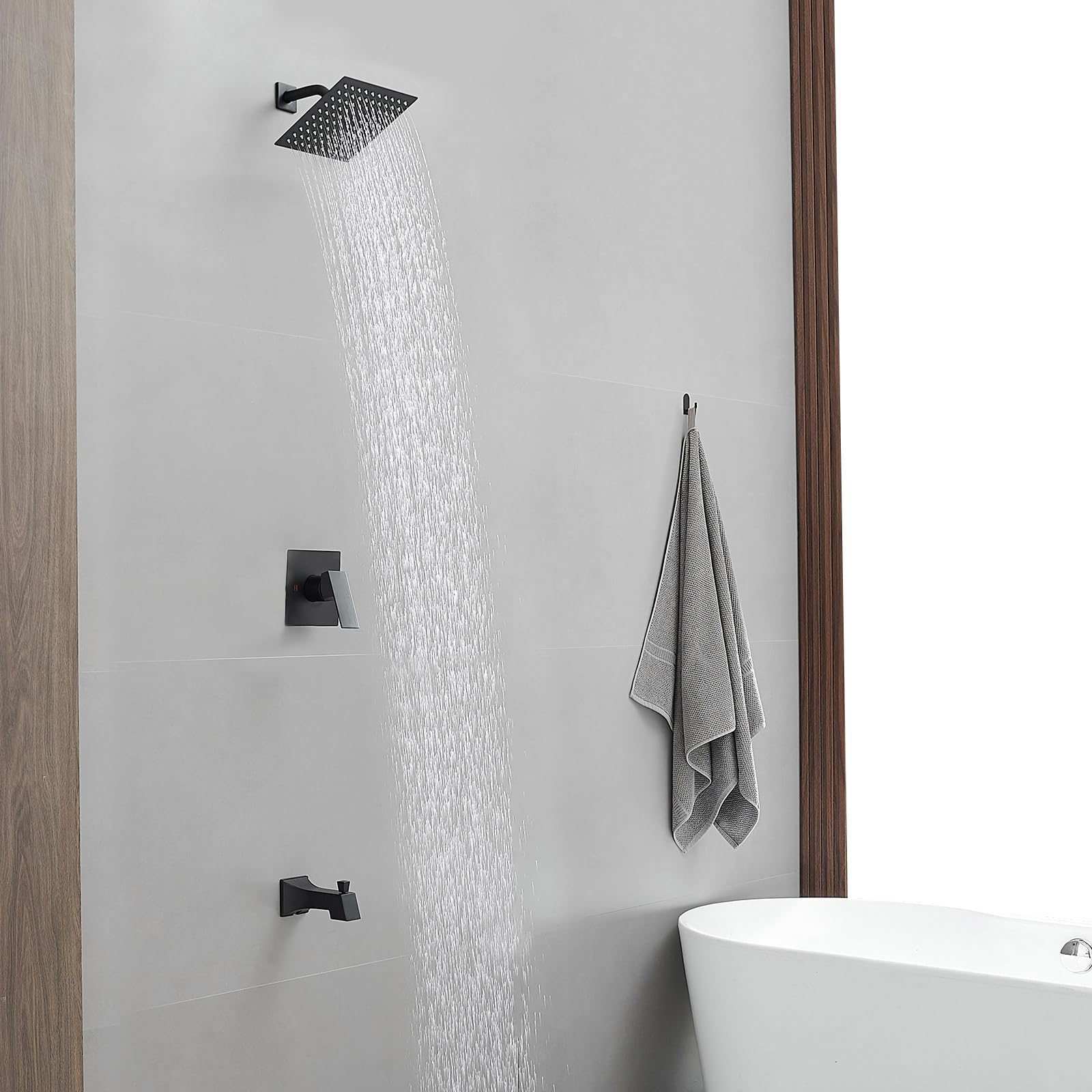 Transform your bathroom into a spa-like oasis with the Homevacious Matte Black Shower Faucet Set. Enjoy the gentle cascade of water from the 8-inch square rainfall shower head while the tub spout provides added convenience. This wall-mounted stainless steel shower combo set not only looks sleek and modern but also comes with a rough-in valve body trim for a seamless installation process. Upgrade your space with this elegant and functional bathtub shower system.