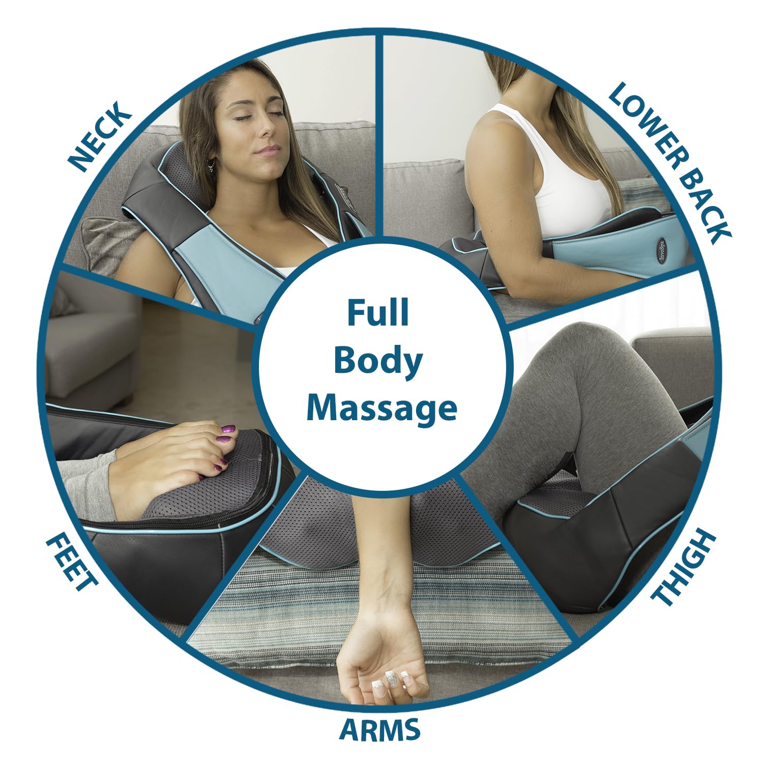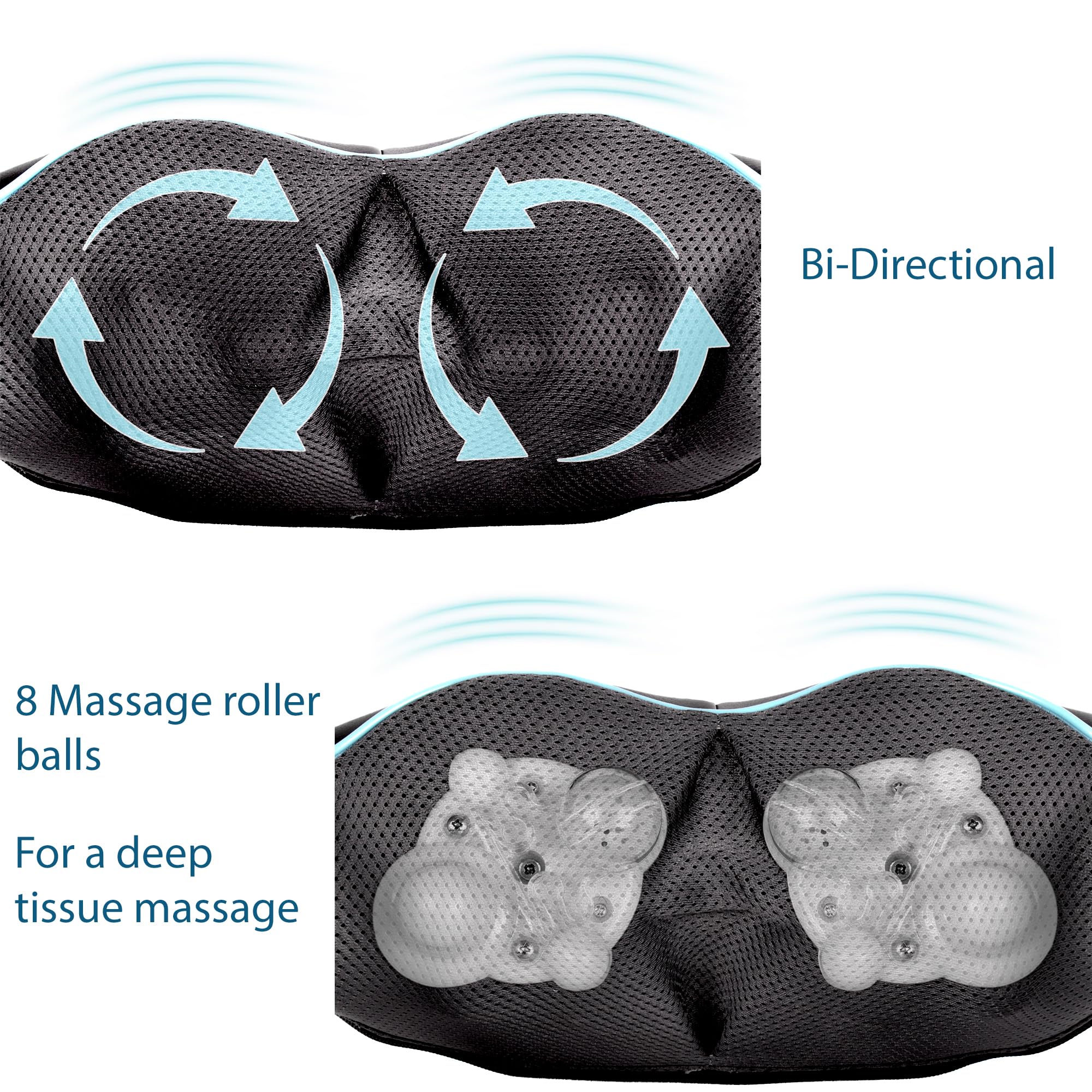 • 8 Massage roller balls - This corded shoulder massager comes with 4 Big nodes and 4 small nodes, which provide deep tissue massages on your neck, shoulders, upper back, lower back, waist, Foot, thighs, calves, legs, feet and arms . All this in the InvoSpa shiatsu neck & back massager with heat.