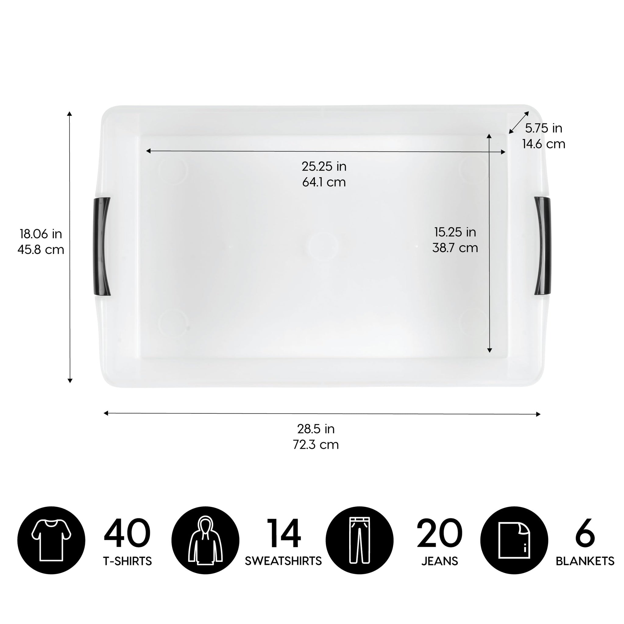 - MADE IN USA: These bins are made in the USA with high-quality global materials and are BPA-free. Dimensions: 28.5"L X 18.06"W X 5.75"H (Inside:25.25"L X 15.25"W X 5.75"H)