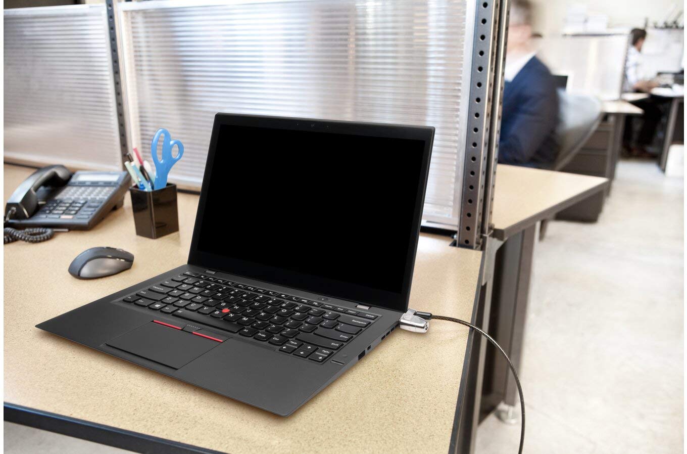 - Carbon steel cable resists cutting attempts and anchors to desk, table or any fixed structure