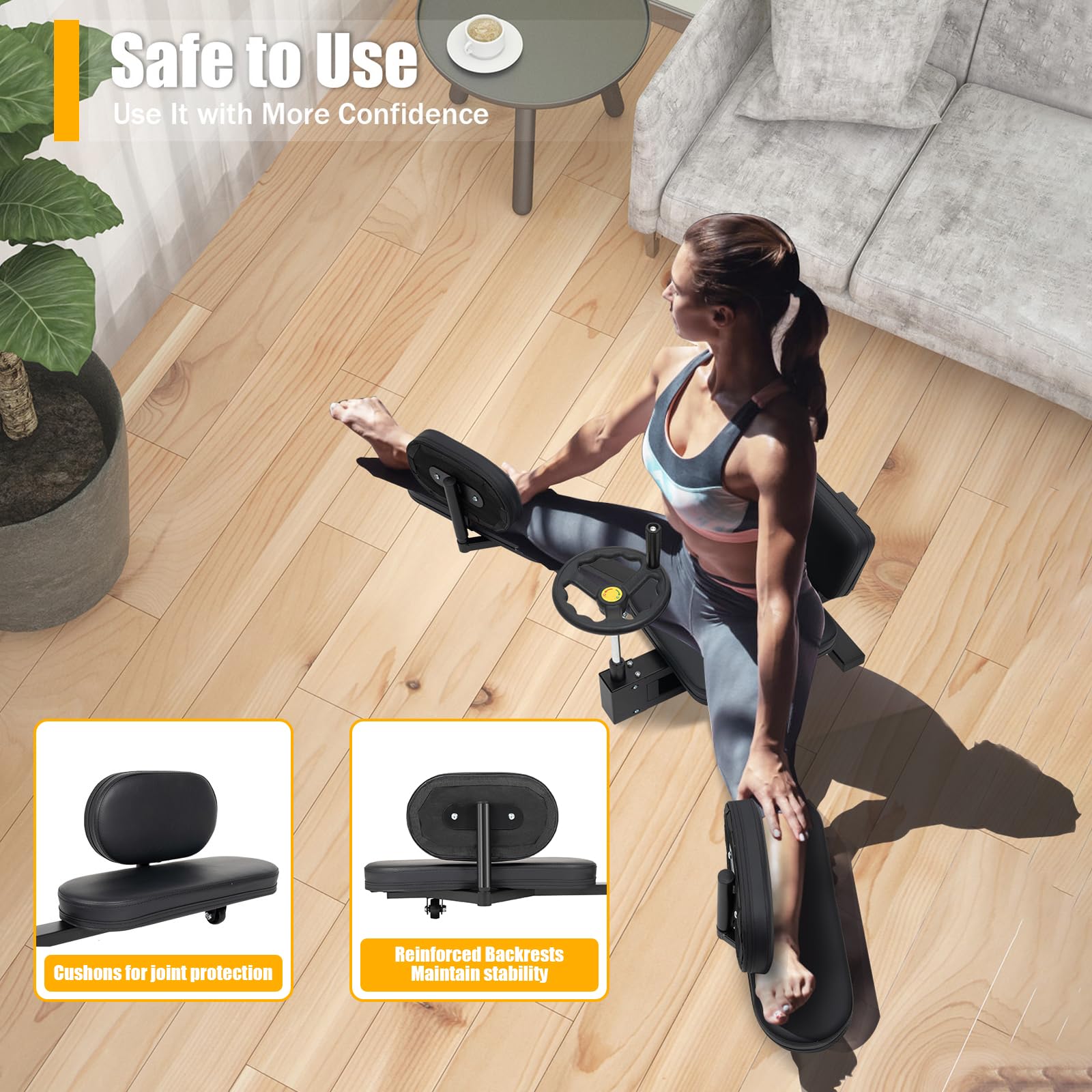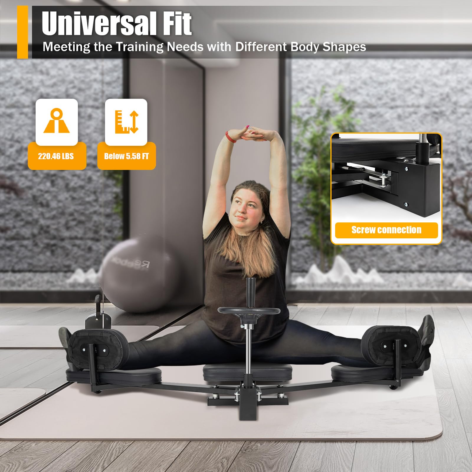 - DURABLE DESIGN – This Leg Stretching Machine has a robust steel frame and screw connection, this stretcher has a stronger loading capacity (220lbs) and more stable support. It is suitable for people below (5'7") in height, meeting the training needs of fitness enthusiasts with different body shapes