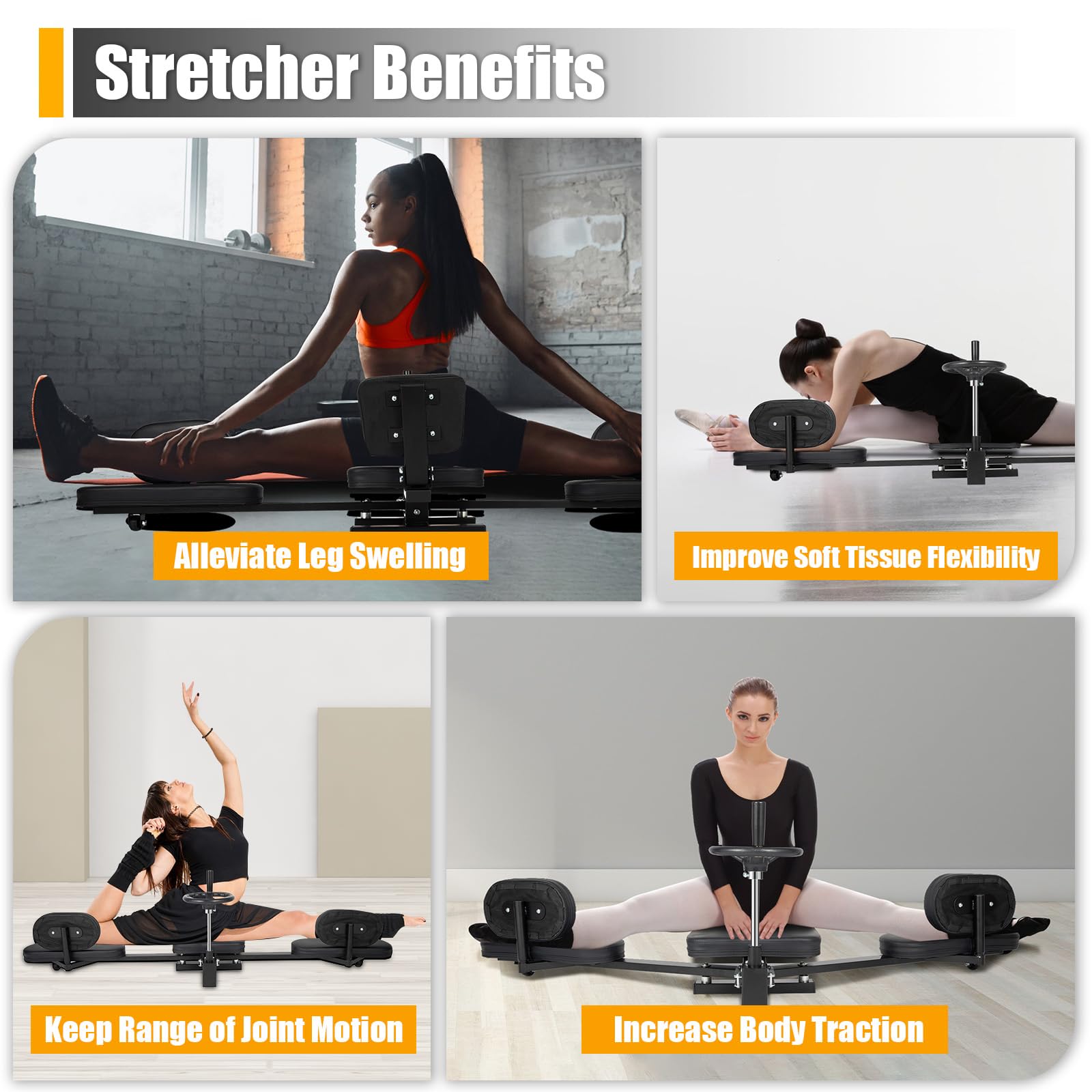 - IMPROVE HIP FLEXORS – Stretching is a training method that promotes physical health by increasing muscle length and altering joint flexibility; The leg stretching machine will improve leg flexibility, posture, and mobility. This stretcher is a must-have for enthusiasts of dance, gymnastics, martial arts, and sports. Suitable for adults and kids, it allows for solo stretching without any help