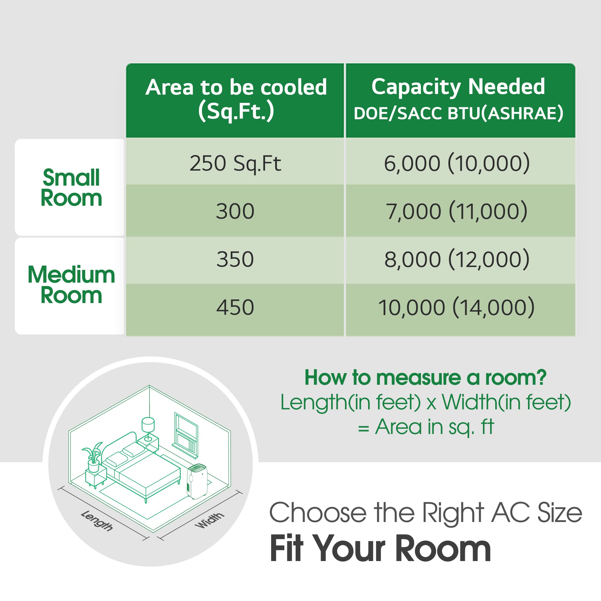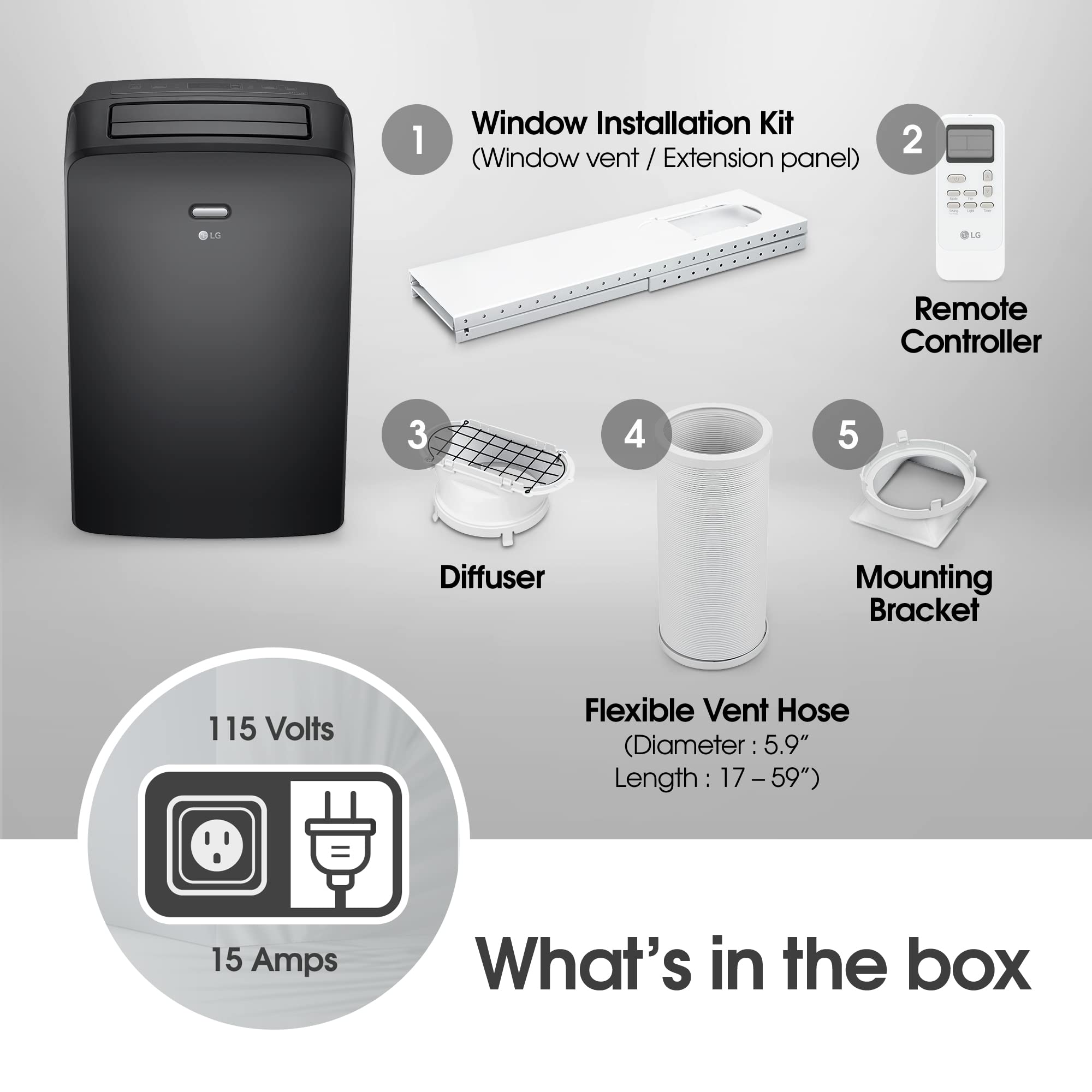 Details: [2023] LG 8,000 BTU DOE/SACC (12,000 ASHRAE) Smart Wi-fi Enabled Portable Air Conditioner