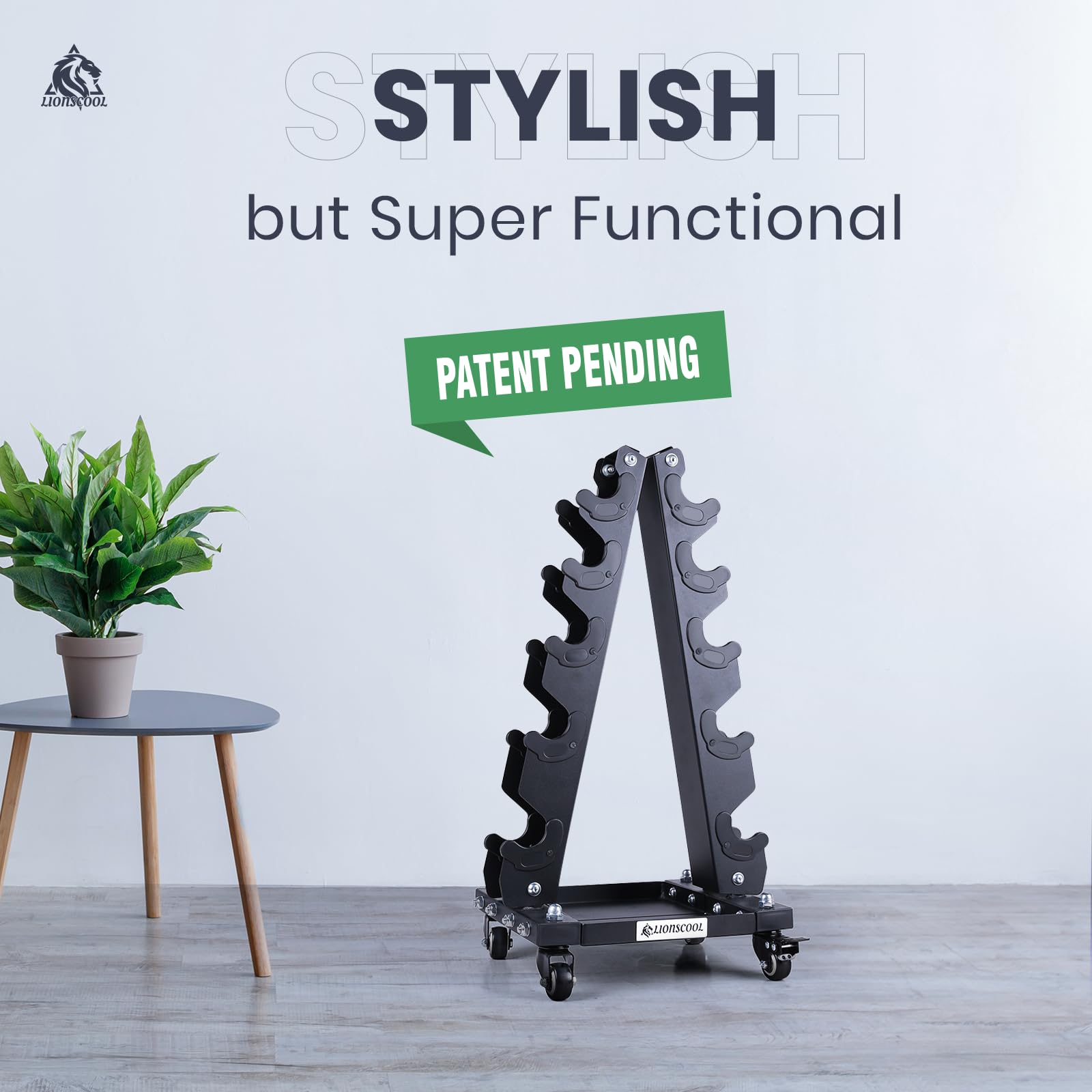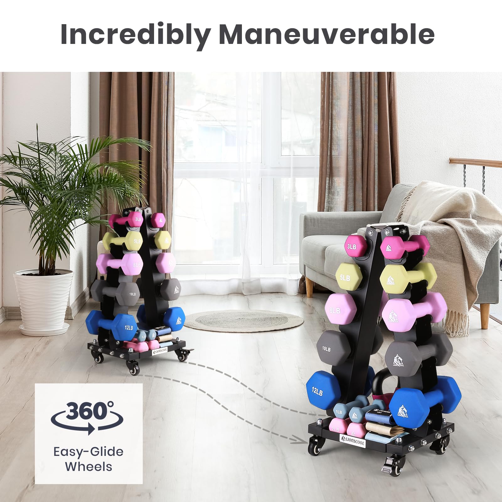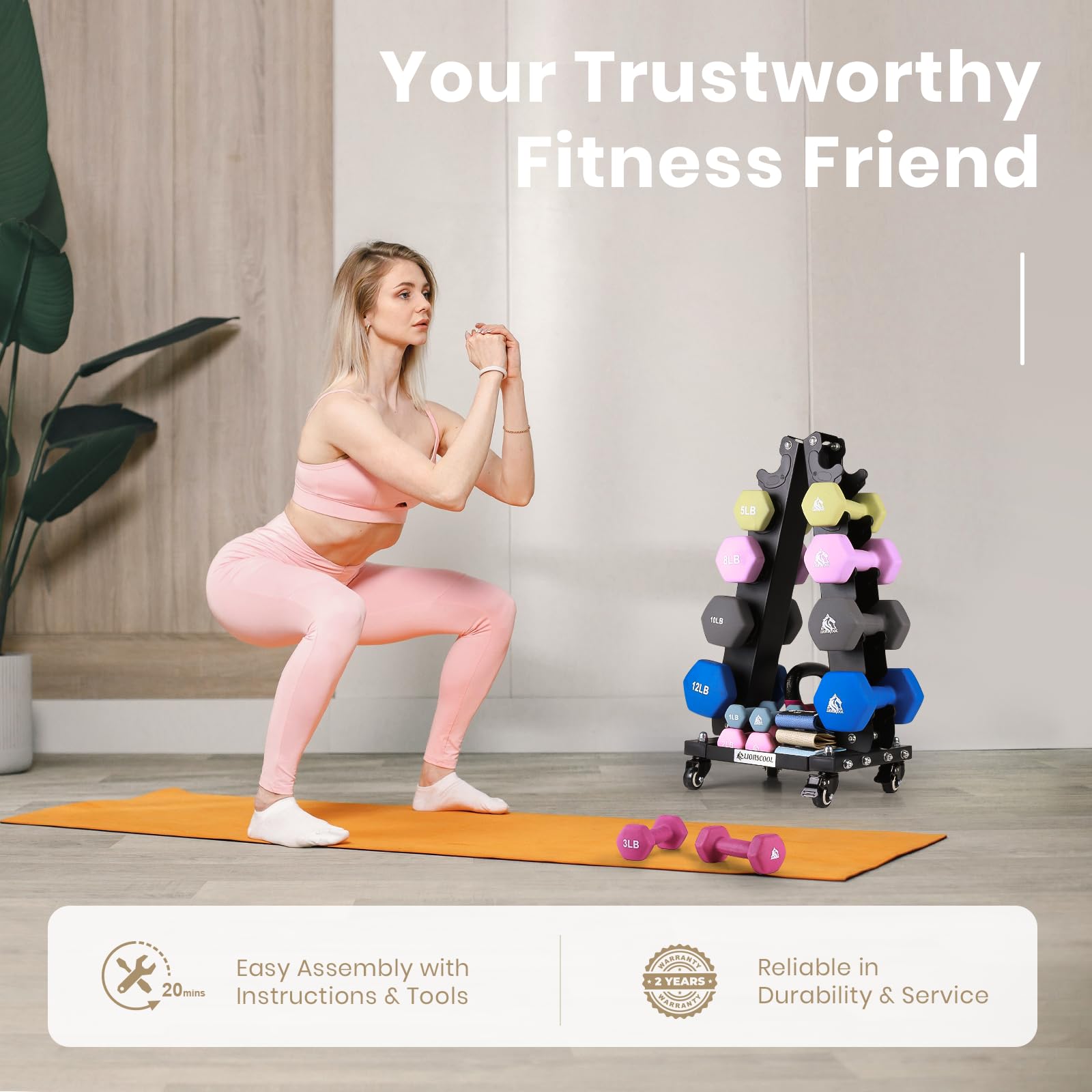 PLKOW Dumbbell Weight Rack, Home Gym Storage for Kettlebells Yoga Mat and Balls, All in One Workout Storage with Wheels and Hooks, Powder Coated Finish Steel