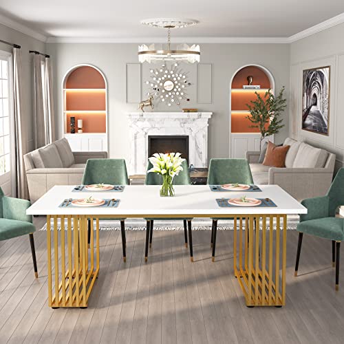70.9" White Office Desk, Modern Executive Desk with Gold Metal Legs, Large Home Office Desks, Wood Computer Desk, Business Furniture