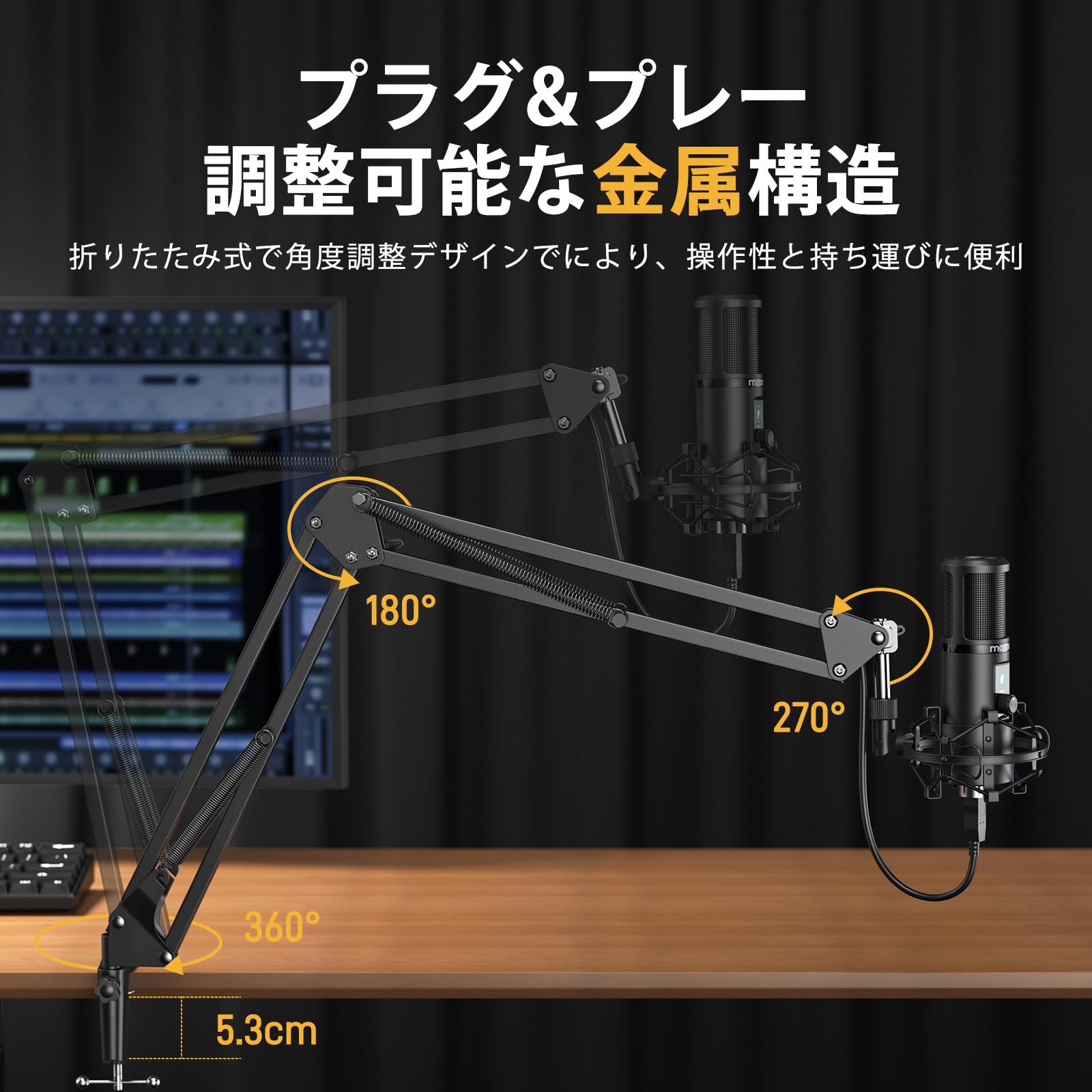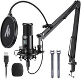 - Premium Arm Stand Set: Aluminum Alloy podcast microphone and Zinc Alloy boom arm, Durable and easy to install, High-quality metal shock mount to isolate USB mic from noise, shock, and ambient vibration, it can protect the computer pc microphone all-around, which effectively extends the using time of the mic. Pop filters and windscreen caps can lower wind and Saliva interference, and record voice more clearly, Whether you record at home or in a studio
