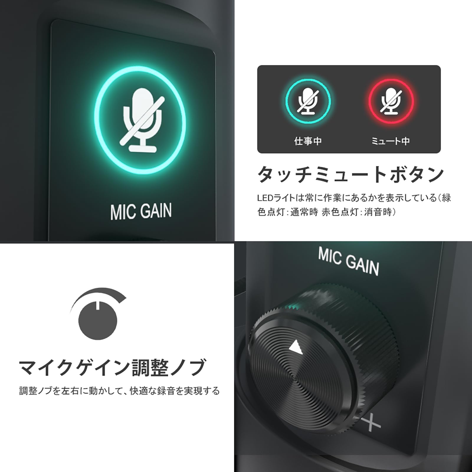 - One-Touch Mute: Acrylic mirror mute button is more clear and more durable, The microphone's built-in LED indicator light informs the status(Green: working, red: mute), Only need to press the mute button to temporarily turn off the microphone when you want to cough or sneeze while staying on the call, podcast, streaming, gaming, or zoom meeting