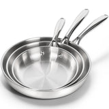 3-piece Stainless Steel Skillet & Frying Pan Set, Includes 8 inch, 10 inch, 12 inch, Made In America