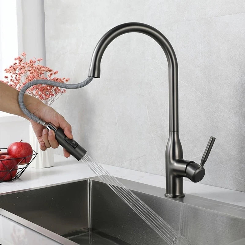 Looking for a contemporary update for your kitchen? Look no further than this modern kitchen faucet. Made from high-quality stainless steel, this flow kitchen sink faucet with pull down sprayer brings both style and convenience to your space. Enhance your kitchen with this must-have item.