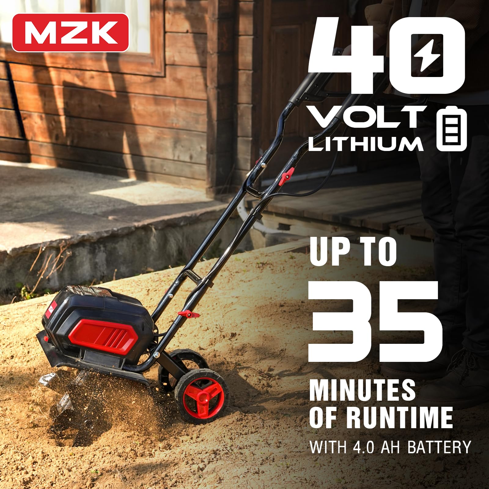 - [CORDLESS DESIGN] Enjoy the freedom of a cordless design with a rechargeable battery that allows you to use the MZK tiller anywhere, anytime. Say goodbye to tangled cords and hello to convenience.