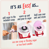 - Flossing sugar or hard candies - unique Extractor head allows you to use traditional flossing sugar or your favorite hard candies to make delicious cotton candy