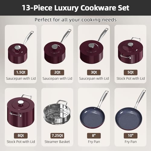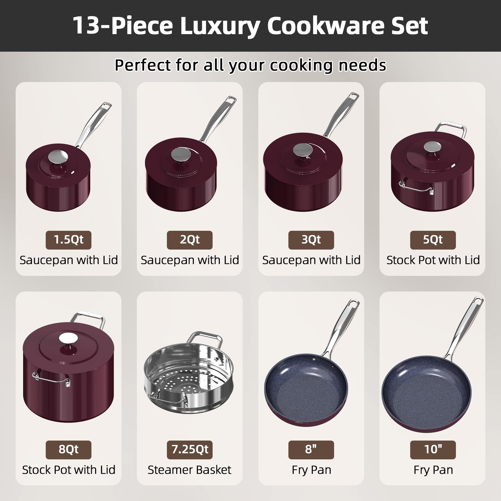 Nuwave Lux 13pc Forged Lightweight Cookware Set PFAS Free, Healthy G10 Duralon Ceramic Coating, Ultra Non-Stick, Stay-Cool Handles, Works on All Cooktops & Induction Ready