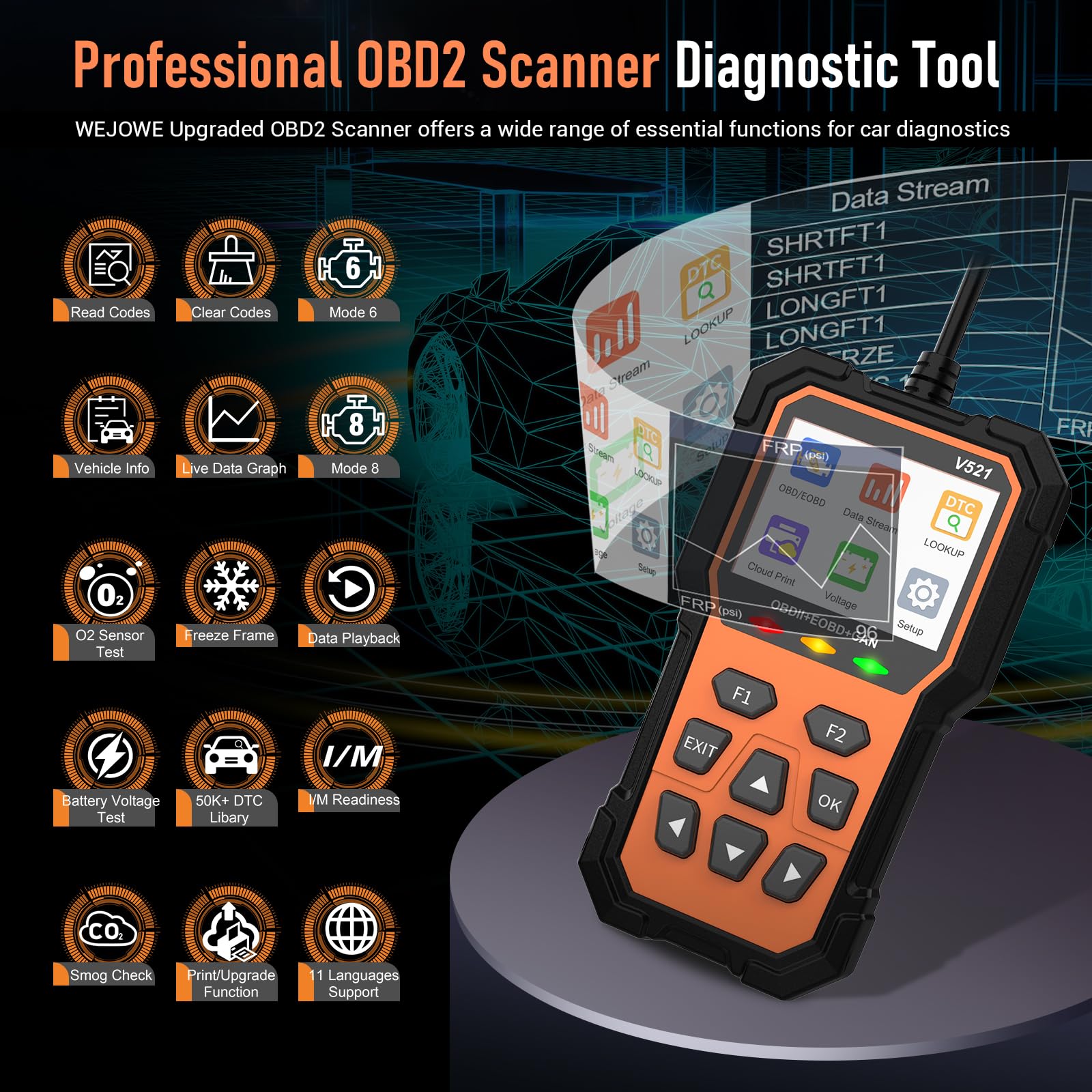 - Enhanced OBD2 Scanner Diagnostic Tool for Car: Our Upgraded OBD2 Scanner offers a wide range of essential functions for car diagnostics. As a professional OBDII Scanner, the obd2 scanner diagnostic tool will help you to read and clear codes, turn off engine lights, view freeze frames, retrieve vehicle VINs, conduct battery voltage tests, and provide live data streams with graphing displays. With a built-in database of 50,000+ DTCs, it covers all essential functions required for effective troubleshooting. It's a great OBD2 Scanner Diagnostic tool for All Cars After 1996