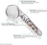 Upgrade your shower routine with the Original StoneStream Filtered Shower Head! Our Eco Power High Pressure Water Softener Showerhead features an ON/OFF switch for easy control, allowing you to save water while enjoying a luxurious shower experience. Say goodbye to dry skin and hair with our spa-like Ionic beads, designed to provide a revitalizing touch. With 3 spray settings to choose from, you can personalize your shower to suit your preferences and elevate your daily routine.