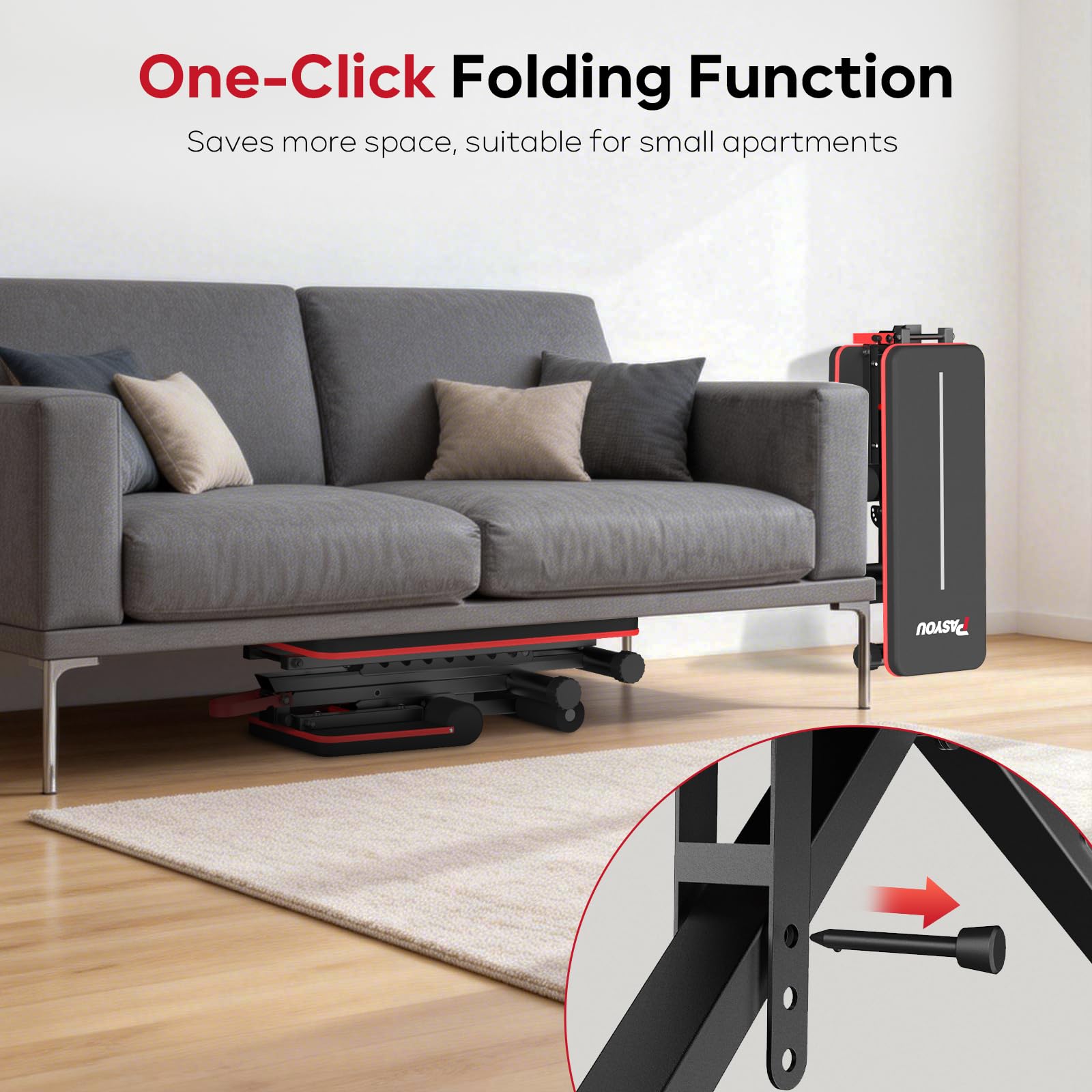 - 1 CLICK FOLDING DESIGN & SPACE SAVING: The 1-click folding design allows the foldable weight bench to fold flat in seconds for quick, space-saving storage. Easily stored under a bed, desk, or in a corner, making it ideal for compact home gyms and apartments.