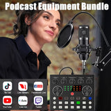- š„ćPlug and Play & Easy To Useć- This V8S sound card with multiple sound effects can be used on any mobile phone, computer, and Any game platform. No need extra driver software. You can connect to different devices (computer/ mobile phone/ laptop) by using different connection methods. The podcast equipment bundle will bring more fun to you and make your recording more creative. This podcast equipment bundle is very simple to use, so you don't have to worry about complicated operations anymore.