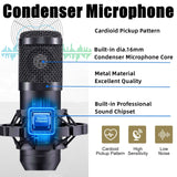 - š„ćMetal Condenser Microphone & Excellent Sound Qualityć- The condenser microphone bundle has been designed with latest professional sound chipset, condenser microphone used the Metal material,Podcast Microphone is 24bit/192kHz bit sample rate, so your recordings will be crystal clear.The cardioid pickup pattern offers pristine and accurate capture, which is more suitable for recording podcasts, vocals and voice works.