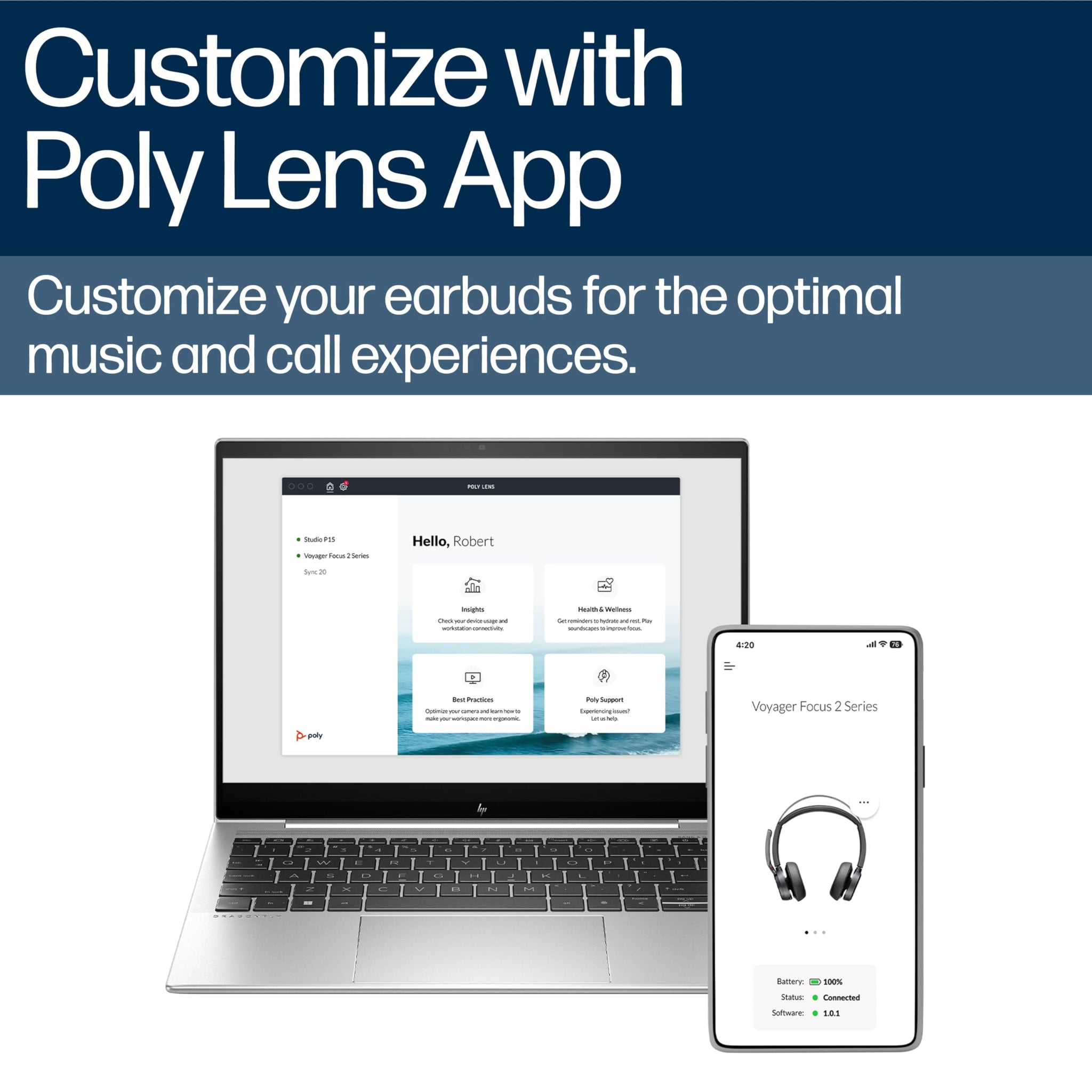 - MAKE IT YOUR OWN: Customize your earbuds with the Poly Lens mobile app to create your best experiences for music and calls.