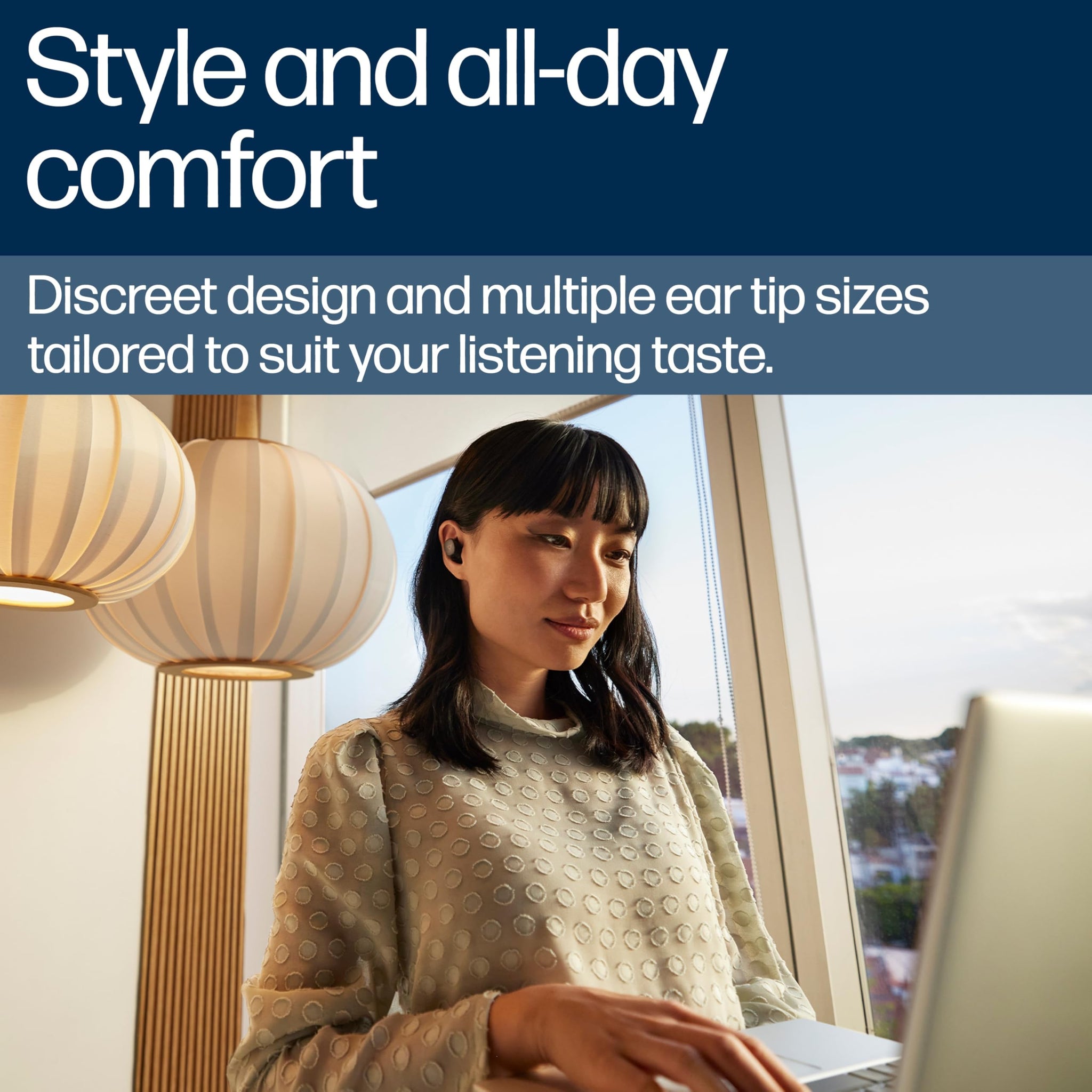 - COMFORT THAT FITS YOUR STYLE: Personalize the fit with four ear tip sizes and the Poly Lens mobile app.