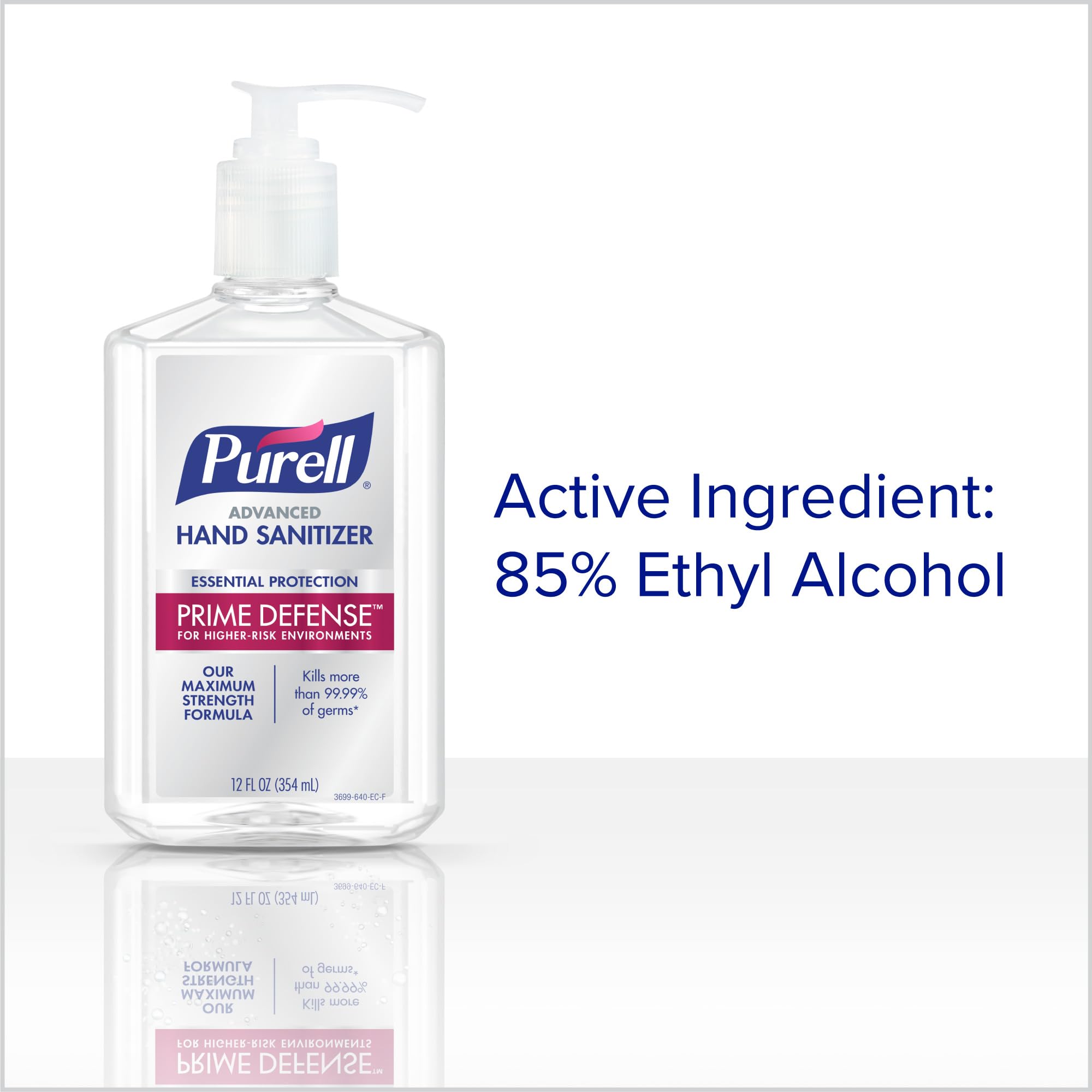 Details: Originally designed for close-quarter settings with higher risks, PURELL PRIME DEFENSE Advanced Hand Sanitizer has the efficacy necessary for urgent needs as well as your everyday life. Our maximum strength formulation features 85 percent ethyl alcohol and advanced technology that breaks down germ cell walls. This professional-grade hand sanitizer kills a wide range of germs with more than 99.99 percent efficacy. Hands feel clean and refreshed after every use. Perfect to strategically place in offices, small businesses, work-from-home environments, or anywhere you want extra germ-killing support. Case pack includes four (4) 12 fl. oz. pump bottles of PURELL PRIME DEFENSE Advanced Hand Sanitizer. As the inventors of PURELL hand sanitizer, GOJO Industries has been leading the world to a new way of keeping hands clean since 1988. Everything our purpose-driven Family Enterprise does is rooted in science and innovation to make the world a better place.