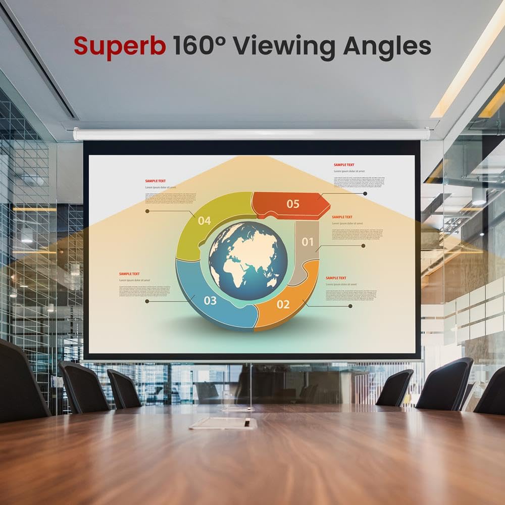 - MATTE WHITE SURFACE: The matte white fabric & black border frame of the video screen pull-down hanging projector screen creates impeccable color balance to project a realistic picture & deliver ultra-wide off-axis viewing making every seat the best one