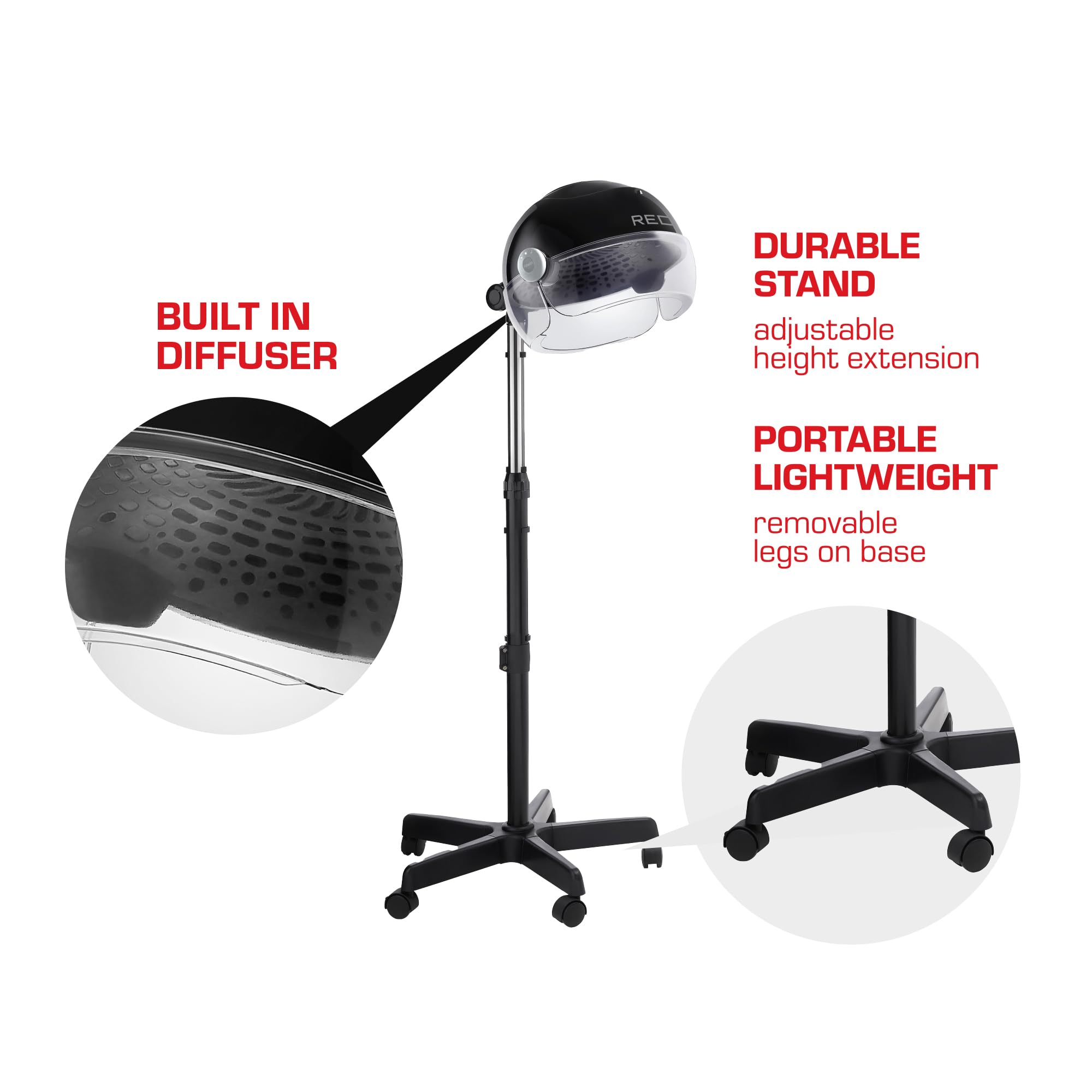 Welcome to the ultimate hair styling experience with the RED by Kiss 3000 Ceramic Stand Hood Dryer. This professional-grade dryer features a digital timer, adjustable height, 360° wheels, and 3 temperature settings for customizable drying. Say goodbye to frizzy hair and hello to quick drying with the comfortable hood design. Perfect for home and salon use, this hair dryer is a must-have for any beauty enthusiast.