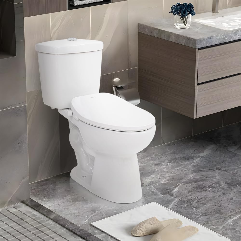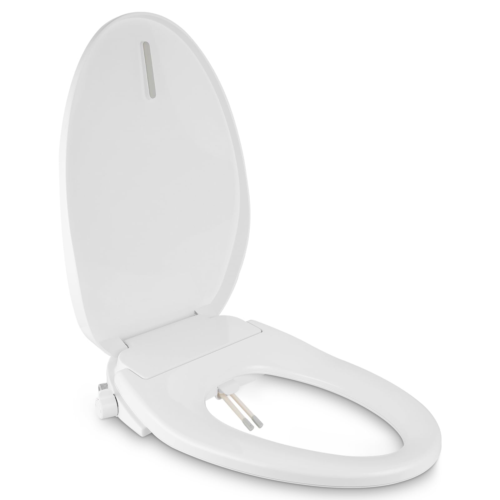 Elevate your bathroom experience with the Elongated Electric Heated Bidet Toilet Seat. This luxury smart heated bidet features warm water for a comfortable cleanse, temperature control for a personalized experience, and a convenient night light for added functionality. The self-cleaning function ensures a hygienic surface, while the slow-close lid adds a touch of elegance. Upgrade to this sleek white bidet seat for the ultimate in comfort and convenience.
