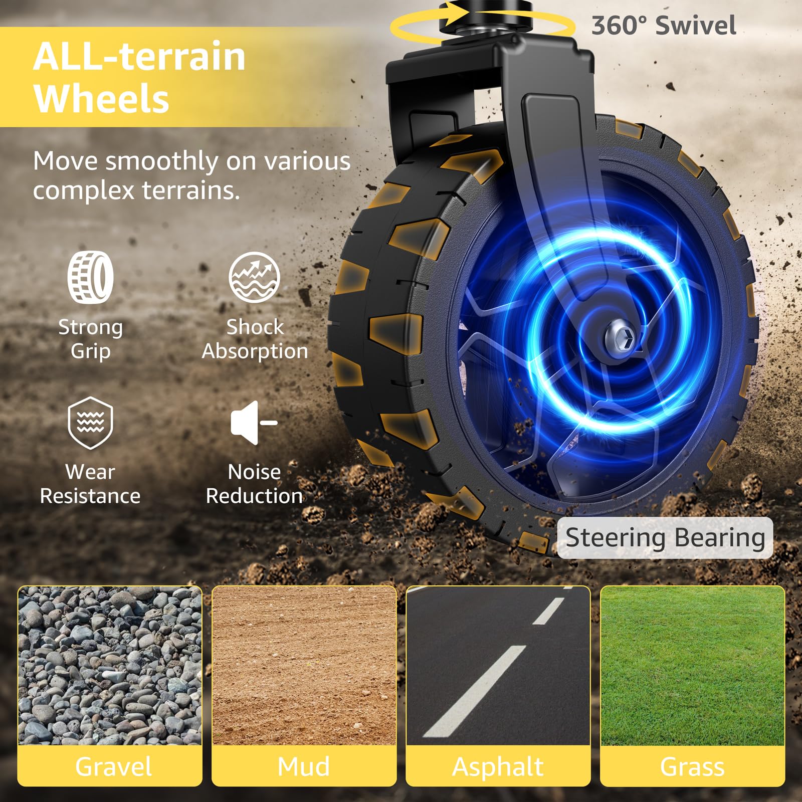 - Sturdy & Enduring: Heavy-duty 1.2mm thick steel frame and 600D Oxford fabric withstand significant weight and all-weather use. Wear-resistant PU wheels would conquer all kinds of terrain