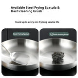 - No coating: Long-term high-temperature use will cause the non-stick coating to fall off. This frying pan is designed without a non-stick coating and is not afraid of long-term high-temperature use.