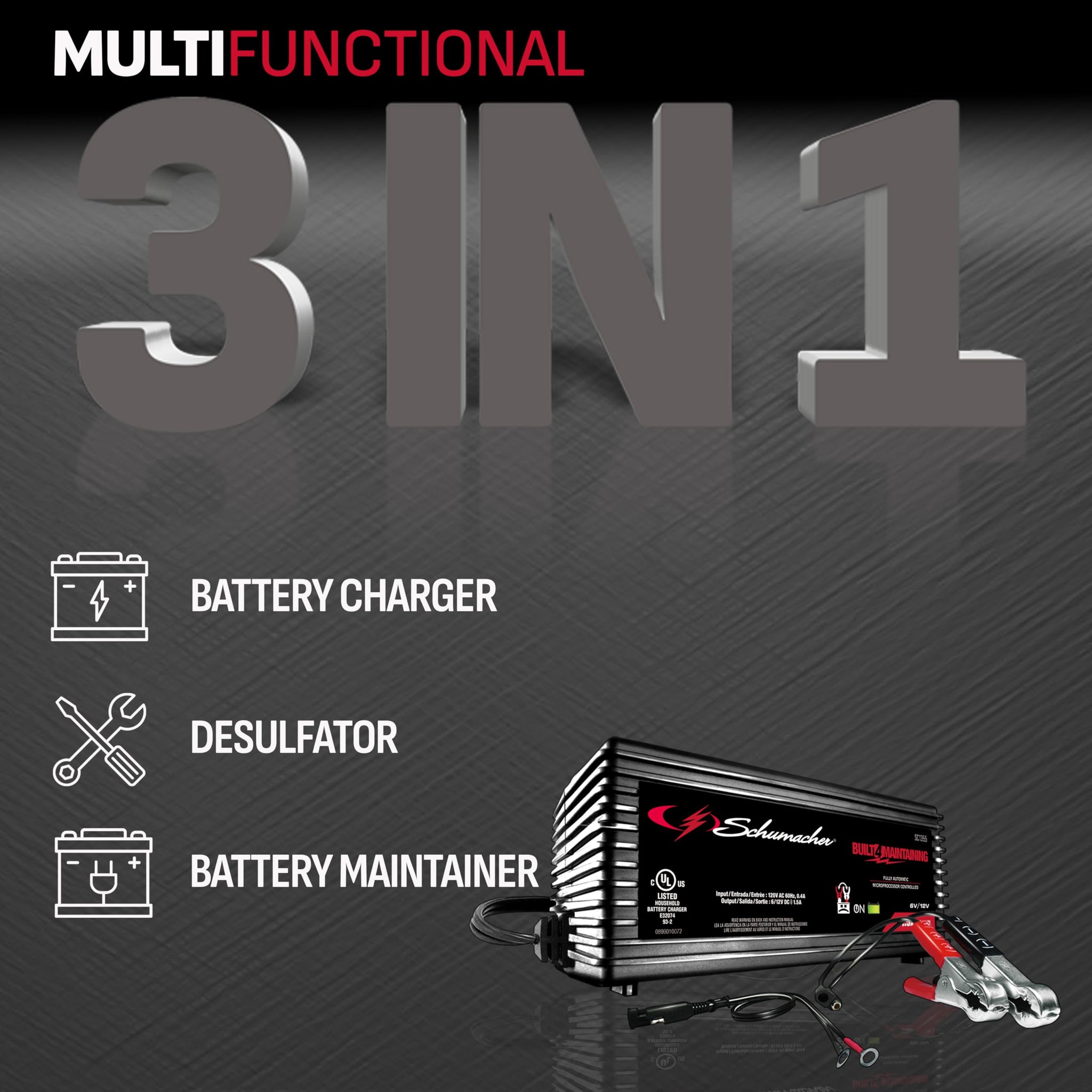 - Works With Common Battery Types: The Schumacher Electric SC1355 Fully Automatic Battery Maintainer is compatible with 6-volt and 12-volt standard, AGM, and deep-cycle batteries
