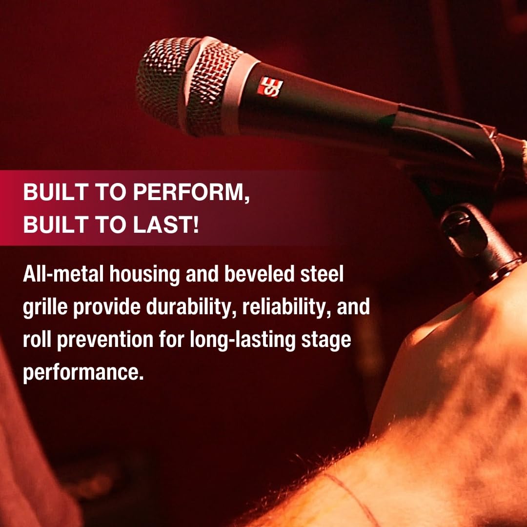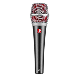 Details: ALL-METAL HOUSING & BEVELED SPRING STEEL GRILLE: -The V7's road-ready design is all metal - no plastic parts here. The chassis' high quality, highly durable zinc alloy is designed to hold up under on-stage stress for years, and the spring steel mesh grille is dent-proof and corrosion-free for perfect reliability. -The beveled edge around the grille prevents your mic from rolling around when you put it down on top of your amp or the stage floor. -The V7's gold-plated XLR connector also ensures a loss-free and reliable signal connection for years to come. INTERNAL WINDSCREEN: -Efficiently reduces unwanted wind noise and plosive pops....and just in case you don't like our stylish "sE Red" color, we've included a spare black windscreen in the box for you. INNOVATIVE, SPECIALIZED ALUMINUM VOICE COIL: -The DMC7 dynamic element in the V7 has been custom-developed for a crisp, open sound that perfectly captures your voice in the most natural way you've ever heard on stage - and its sophisticated supercardioid capsule design helps isolate your voice from other instruments, ensuring vast amounts of gain before feedback. -Proven Neodymium magnets, tight production tolerances & high-end workmanship ensure excellent sensitivity, superior sound quality and superb consistency. PATENTED INTEGRATED SHOCK MOUNT: -The V7's brand new, patented shockmount efficiently decouples the capsule from mechanical vibration, providing exceptionally low handling noise as compared to other mics in its class. This means you can feel free to move around on stage without fear of rumbles, pops, or anything other than your voice coming through.