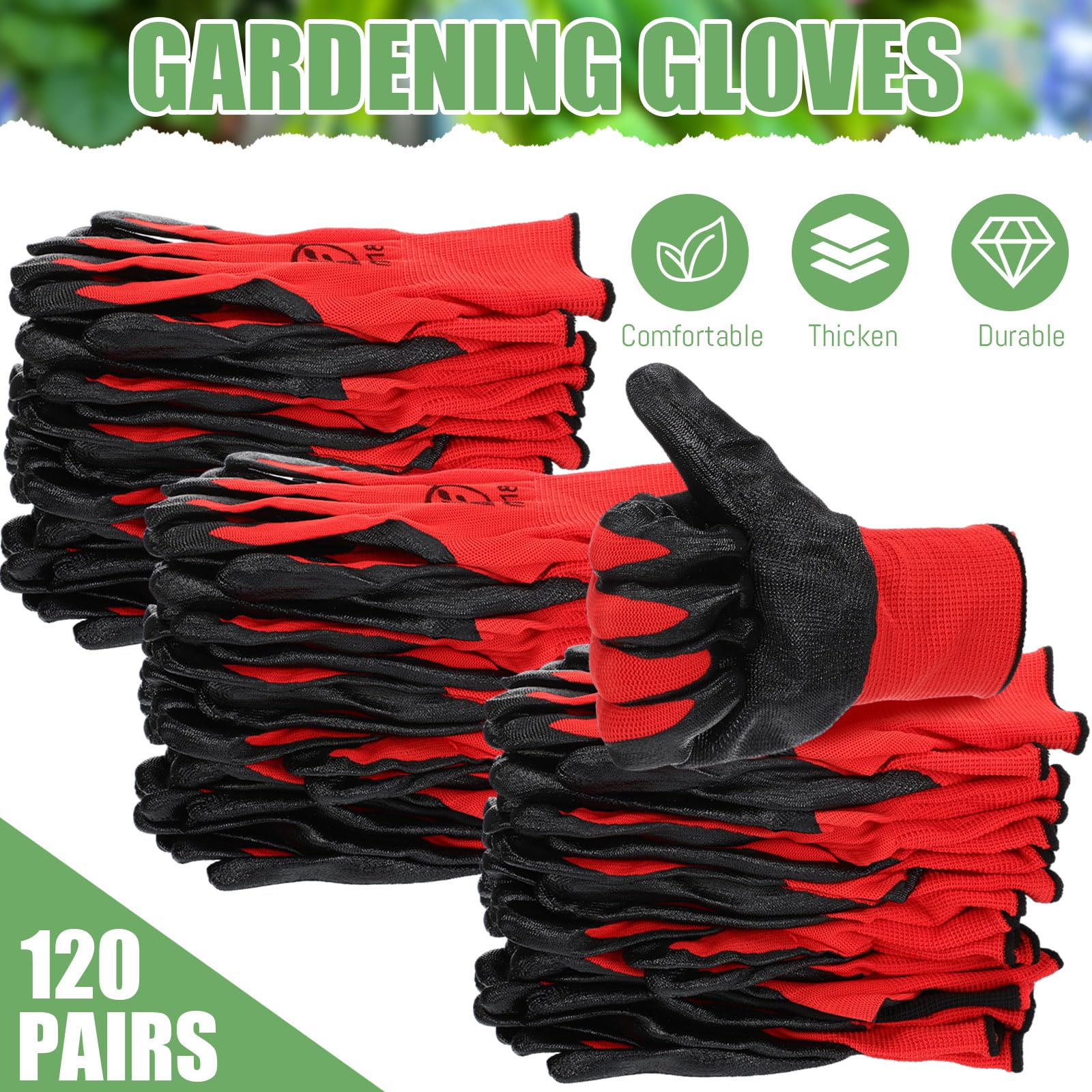 120 Pairs Gardening Work Gloves Bulk for Men Women, Breathable Nitrile Rubber Coated Garden Gloves, 9.1 Inch