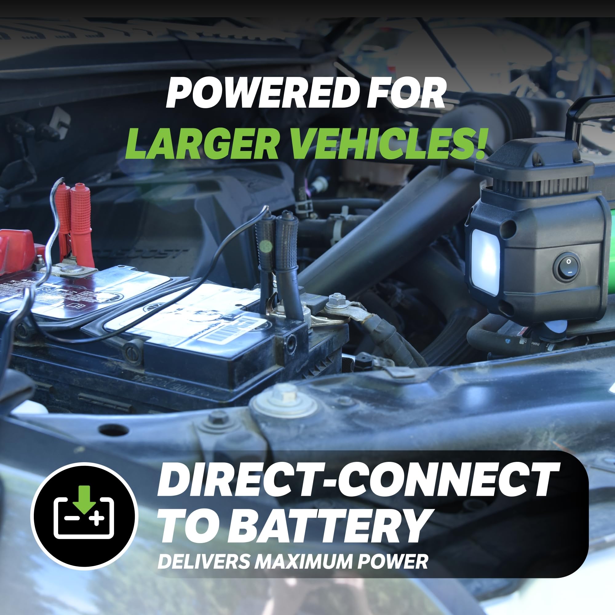 Details: Unleash the beast. Slime's Heavy Duty 2X Pro Power Tire Inflator was built to handle pretty much anything thrown at it. With its direct drive, dual cylinders, this tire inflator can air up a car tire in just two minutes.