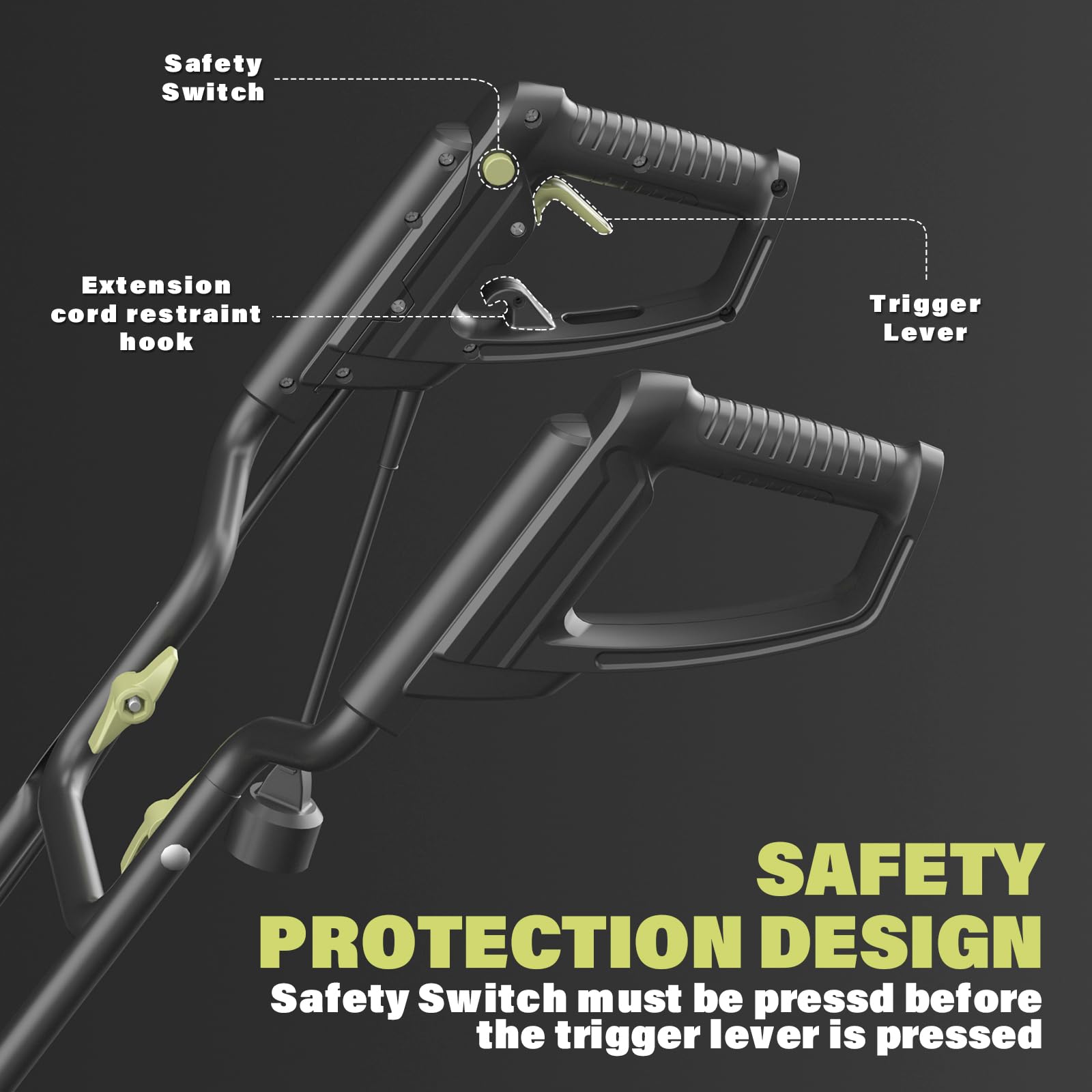 • Enhanced Safety Features - Your safety is our priority! This electric cultivator is designed with double safety protection and requires two buttons to be pressed simultaneously to start it, along with overload protection, ensuring user safety during operation.