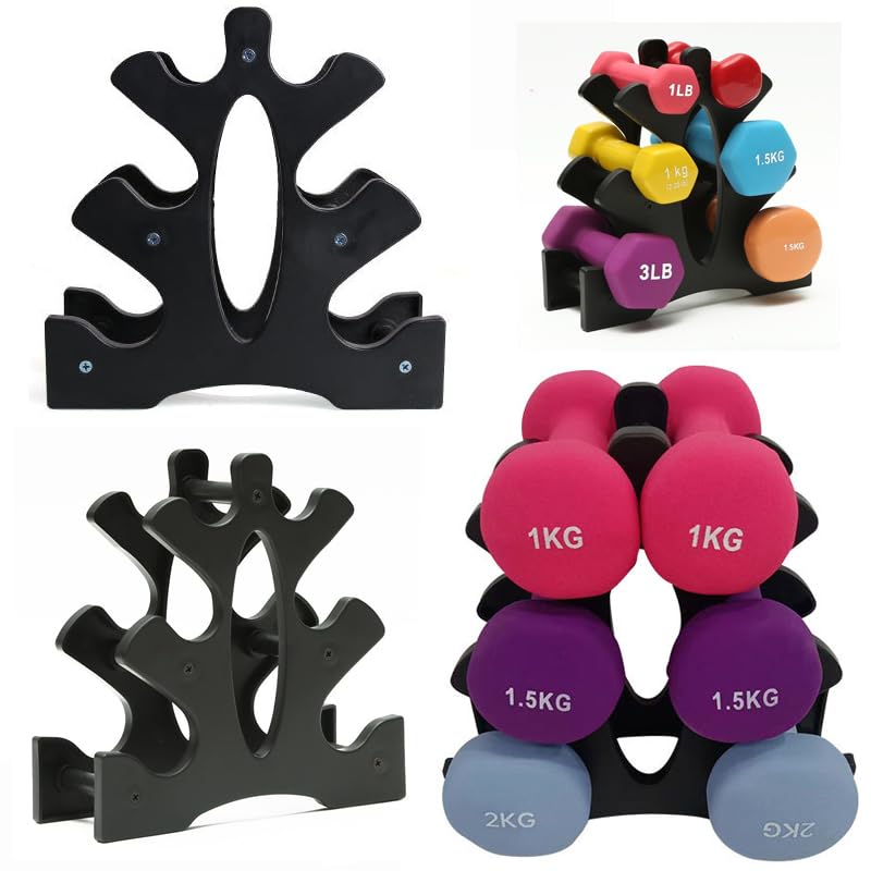 SquEqu Neoprene Dumbbell Rack Hand Weights Bracket Display Storage Stand Organizer Lightweight Plastic Assemble 6 Position Holder for Hand Weight Dumbbells 1LB-15LBS Gym Fitness