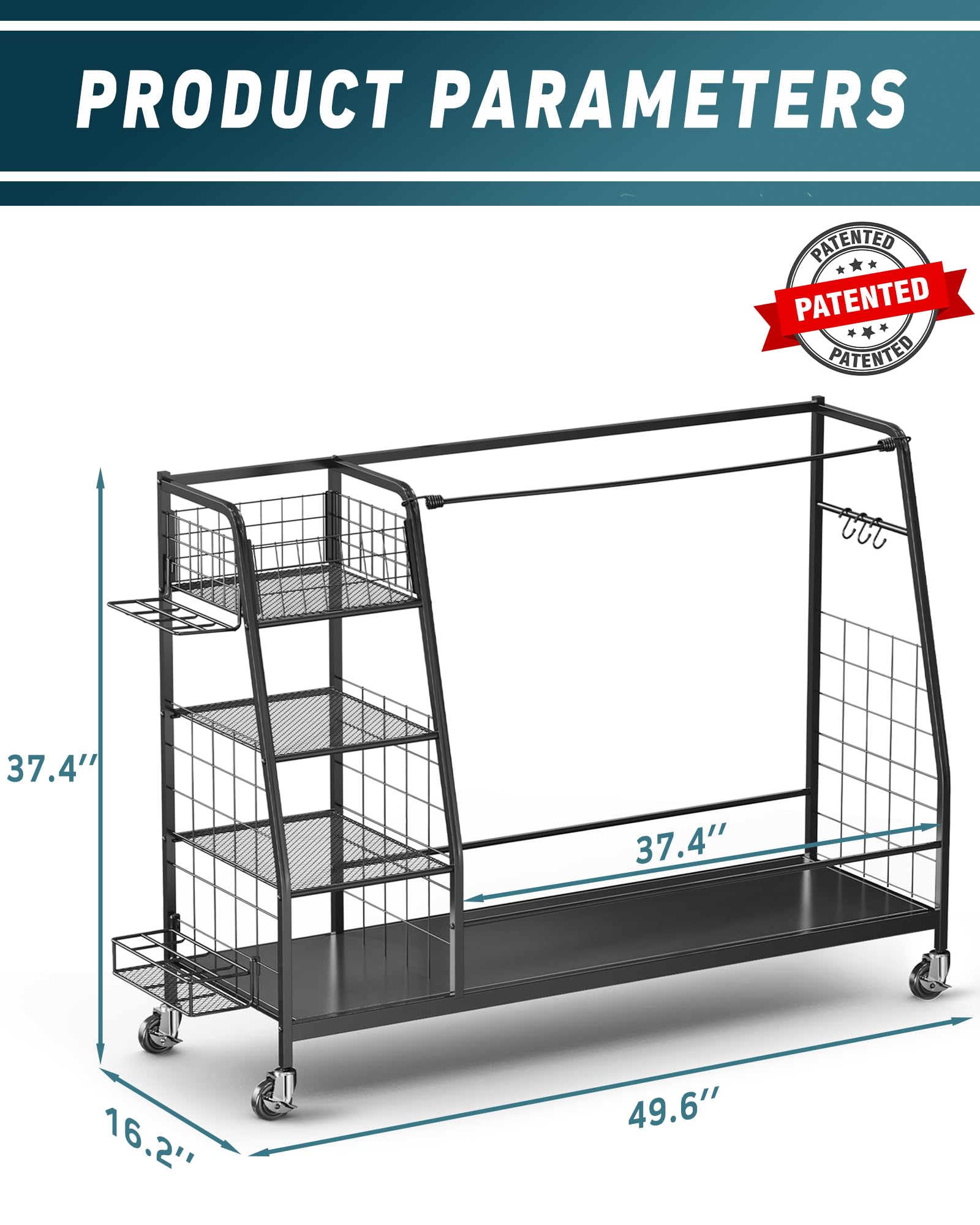 - 【Sturdy and Durable】The golf bag storage rack for garage, made from high-quality metal, is durable and sturdy. It features an industrial black powder coating for longevity and a reinforced thick bottom panel for enhanced durability over standard net racks.