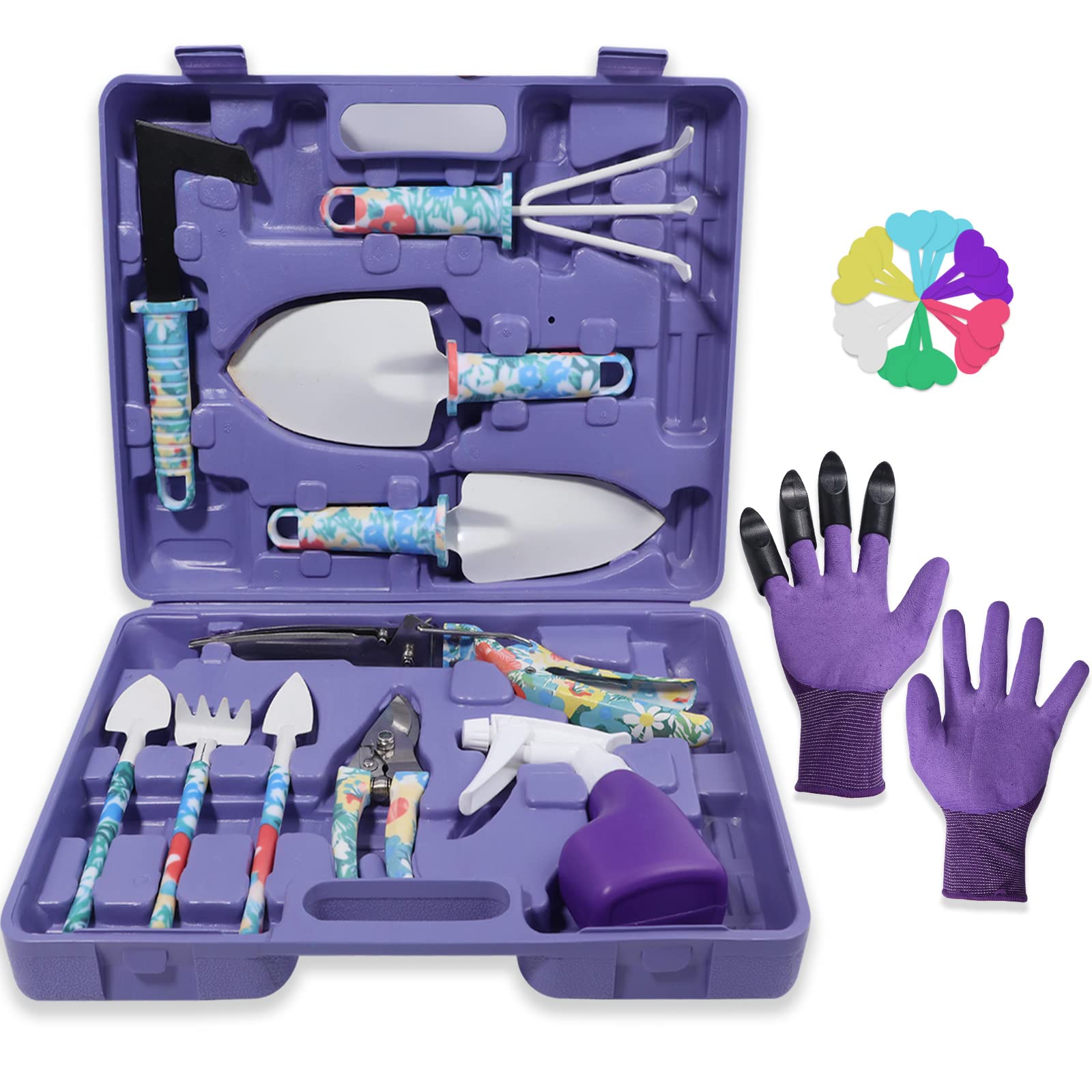 10PCS Purple Garden Tools Set & 11PCS Blue Gardening Gifts for Mom