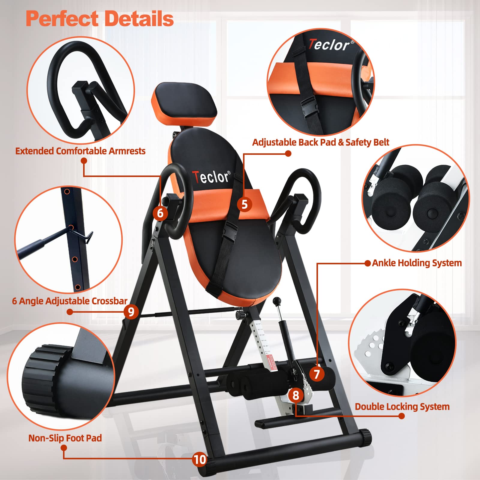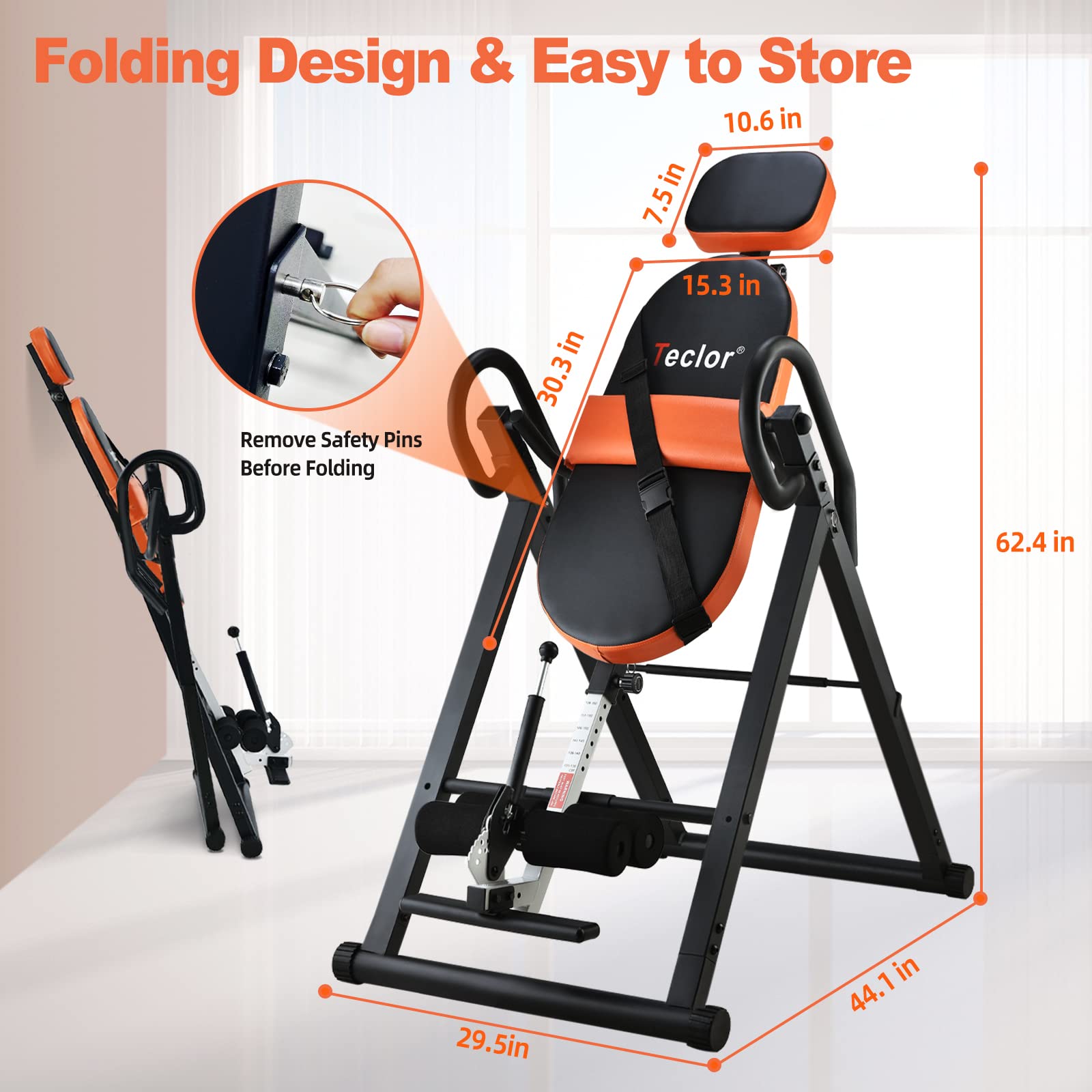 • 【Wider & Longer Backrests】Elevate your back decompression experience with our Teclor inversion table built for superior strength, featuring a wider and longer backrest tailored which is 30.3in long and 15.3in wide for ergonomic support during your inversion sessions.