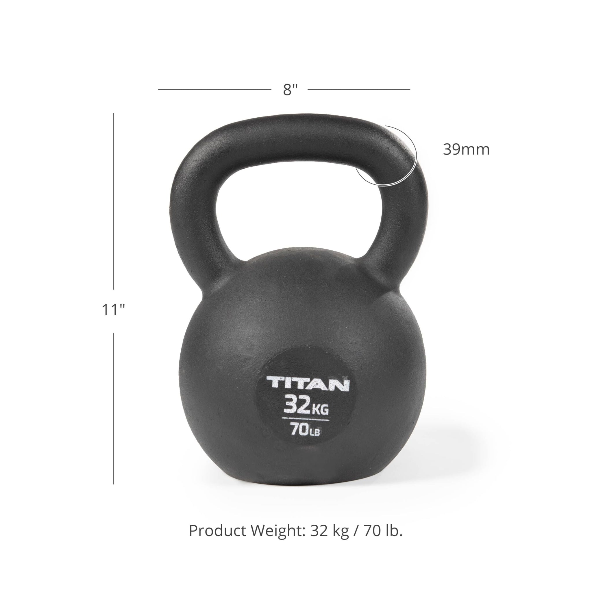 Details: The Cast Iron Kettlebells work as weight resistance and counterbalance for a variety of upper and lower-body exercises. Ranging from 4 KG (9-pounds) up to 32 KG (70-pounds), these single, solid piece casts are machined with flat bases that allow for push-ups and no wobbling. Constructed with a durable, smooth wide-loop handle and a round profile with debossed weight indications in KG and LB. These kettlebells are an ideal purchase for building muscles, enhancing core strength, and improving balance.