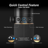 - Perfect for Content Creator: Under USB mode, you can directly control the volume by pressing the "+" and "-" buttons. Long-press the mute button to switch volume control between the microphone and headphone. With a 3.5mm headphone jack, you can monitor your voice in real-time. This recording microphone is the perfect choice for YouTubers and TikTok influencers.