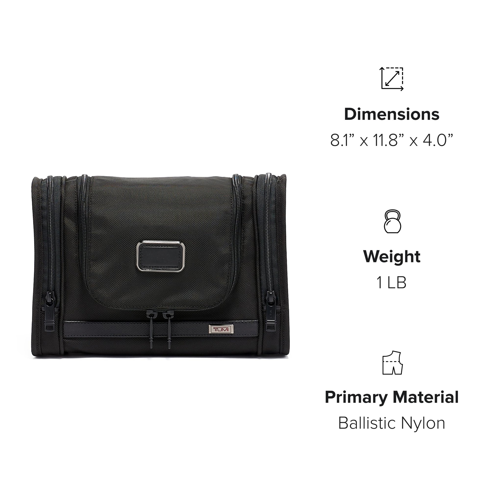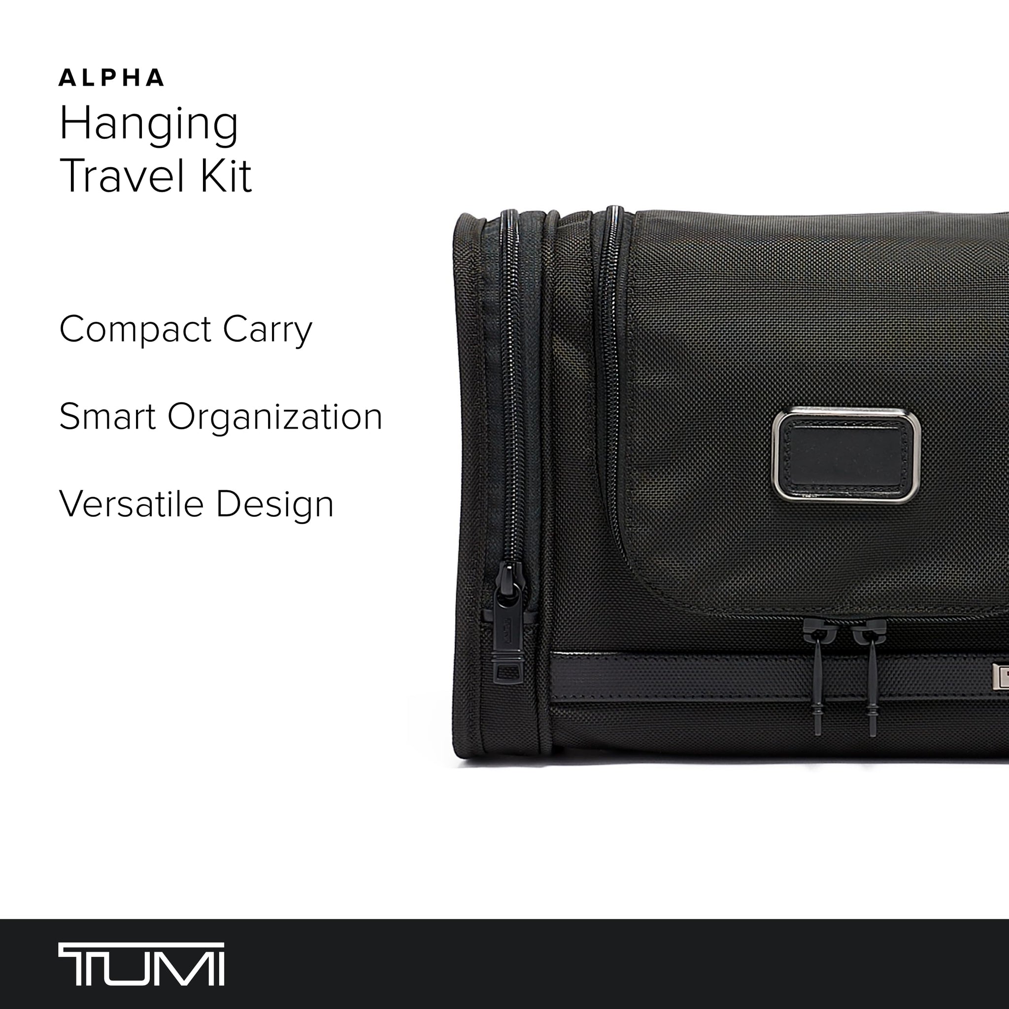 The TUMI Alpha Hanging Travel Kit is the must-have toiletry bag for all your travel needs. With multiple pockets and hooks, this black cosmetics organizer is perfect for keeping your travel essentials organized and easily accessible. Say goodbye to rummaging through your suitcase - this toiletry bag has got you covered.
