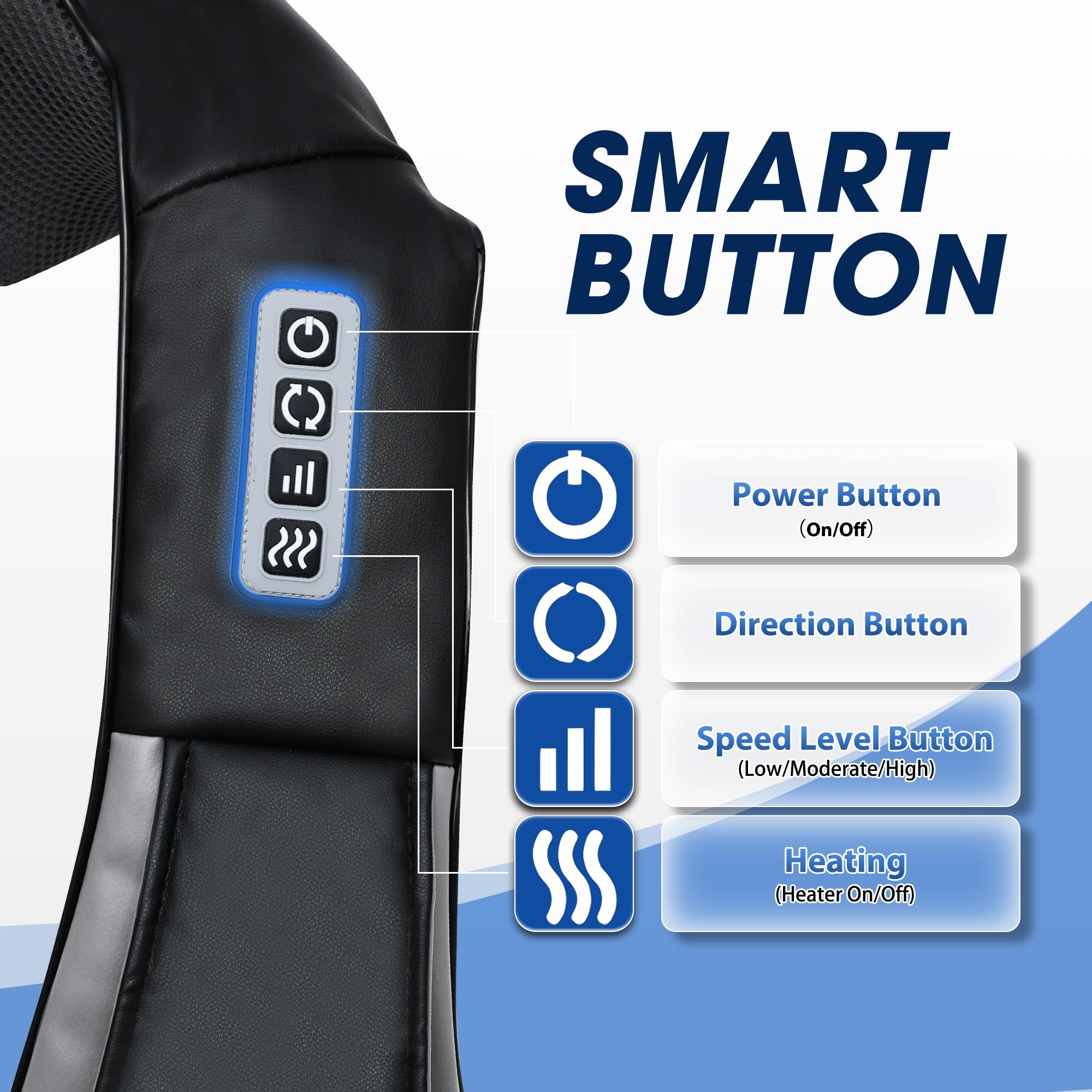 • Three Adjustable Speed Control: With three adjustable speeds (slow, medium and fast), you can adjust the speed to suit your needs and you can also adjust the direction.The shoulder massage will automatically turn off for 15 minutes and will automatically change direction every minute, so that you can enjoy a pleasant 15-minute all-around massage relaxation experience even when you fall asleep.
