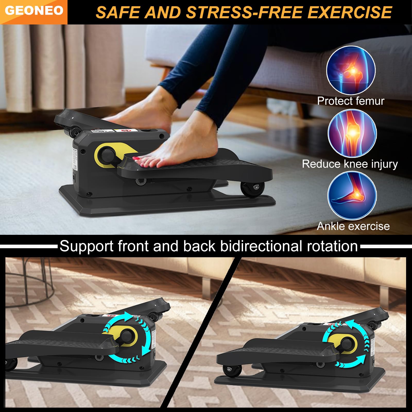 • 【Safe and stress-free exercise】 Low-impact exercise on this under desk elliptical machine helps stimulate circulation, burn calories, strengthen lower body muscles, enhance mobility, while helping legs adapt and recover quickly, making it ideal for sedentary office workers, the elderly, and individuals who need leg rehabilitation. Lightweight pedal exerciser with built in groove for easy carrying, whether working, reading, or watching TV, you can do leg exercises anytime and anywhere