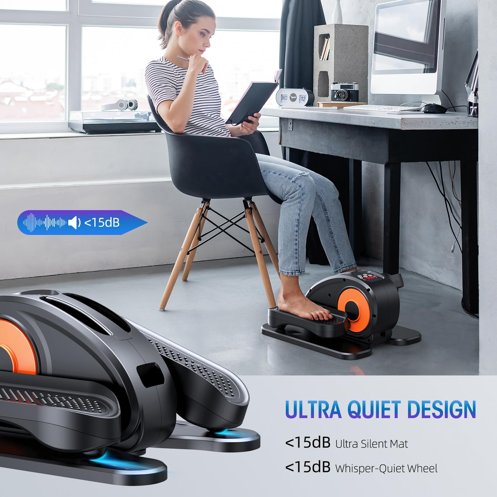 • 【SILENT OPERATION】Equipped with the latest silent system, this under-desk elliptical ensures a noiseless workout, even at a high speed. It allows you to exercise anytime and anywhere, without disturbing your co-workers or family. members.