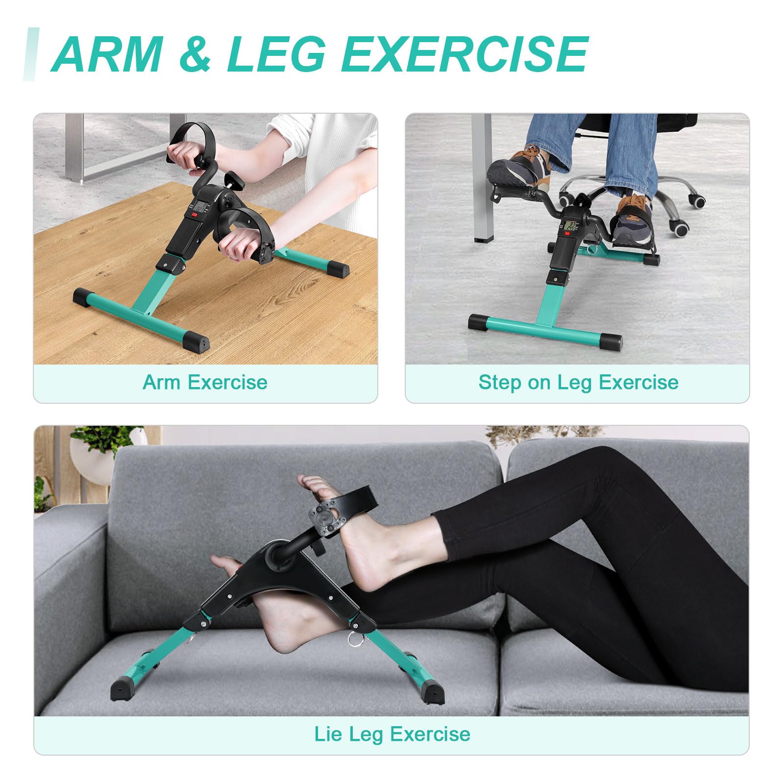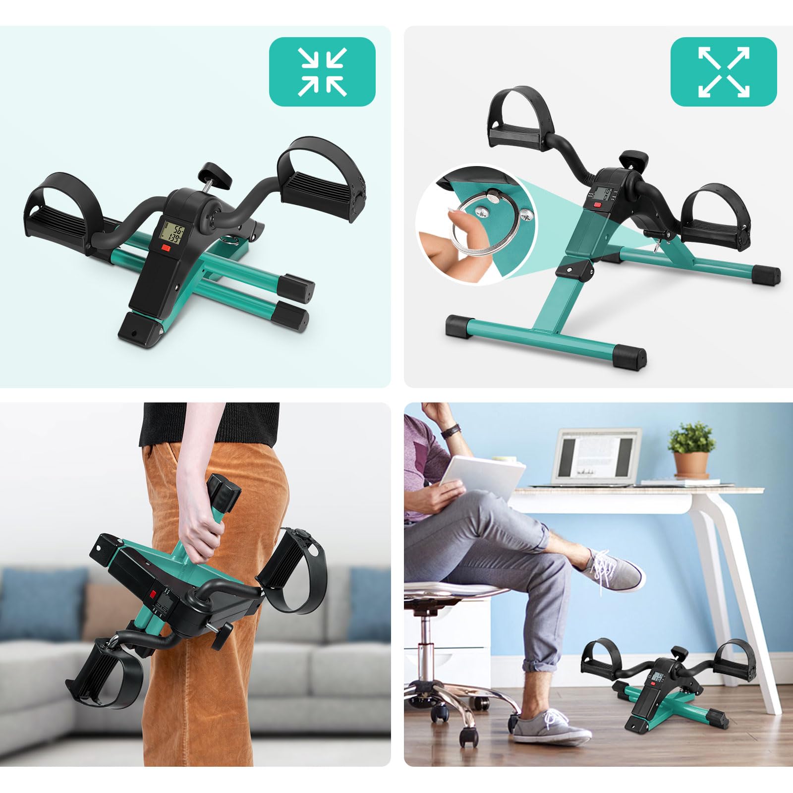 - 【Under desk bike pedal exerciser】: Uten's third-generation appearance design adopts high-grade silver and gray colors.The exercise bike is made of durable steel frame, which can be folded, and the crank arm ensures a long service life. The mini exercise bike can be used to stimulate blood circulation, improve muscle strength and coordination. It is specially designed to exercise arms and legs. The 4 anti-slip rubber pads prevent sliding and protect the surface during training.