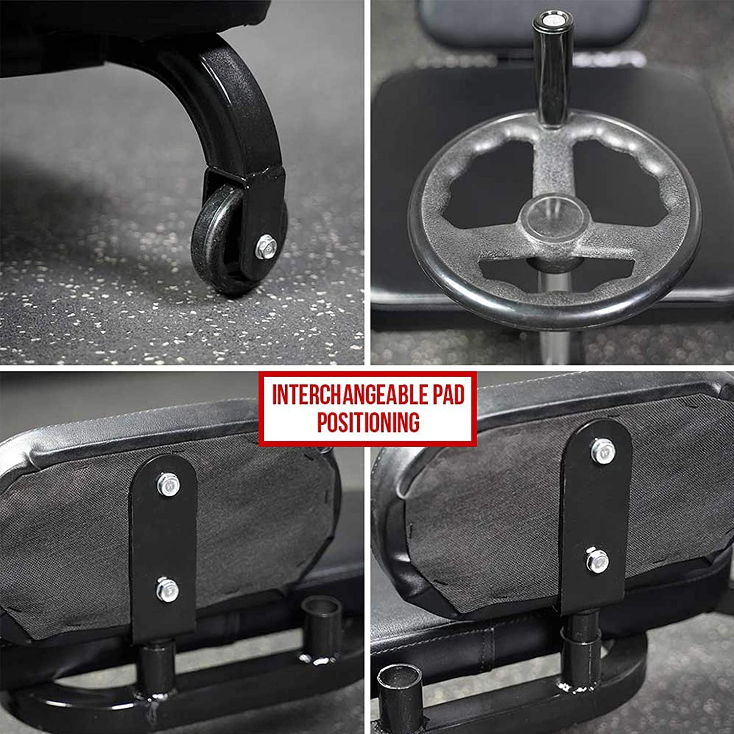 • ADJUSTABLE- Easily adjusts to create a deeper stretch by slowly turning the wheel to move leg positions. Adjustment happens smoothly with wheels at the bottom of each leg pad. Back pad has two angled positions including a 110 and 105-degree angle.