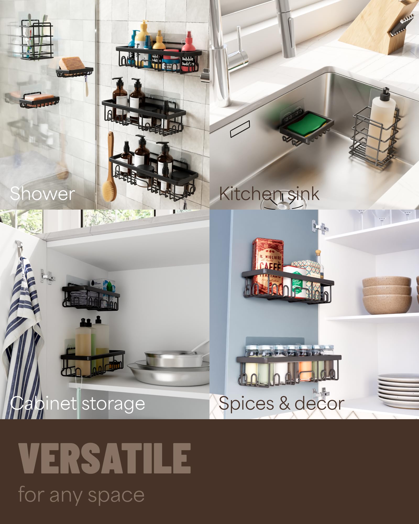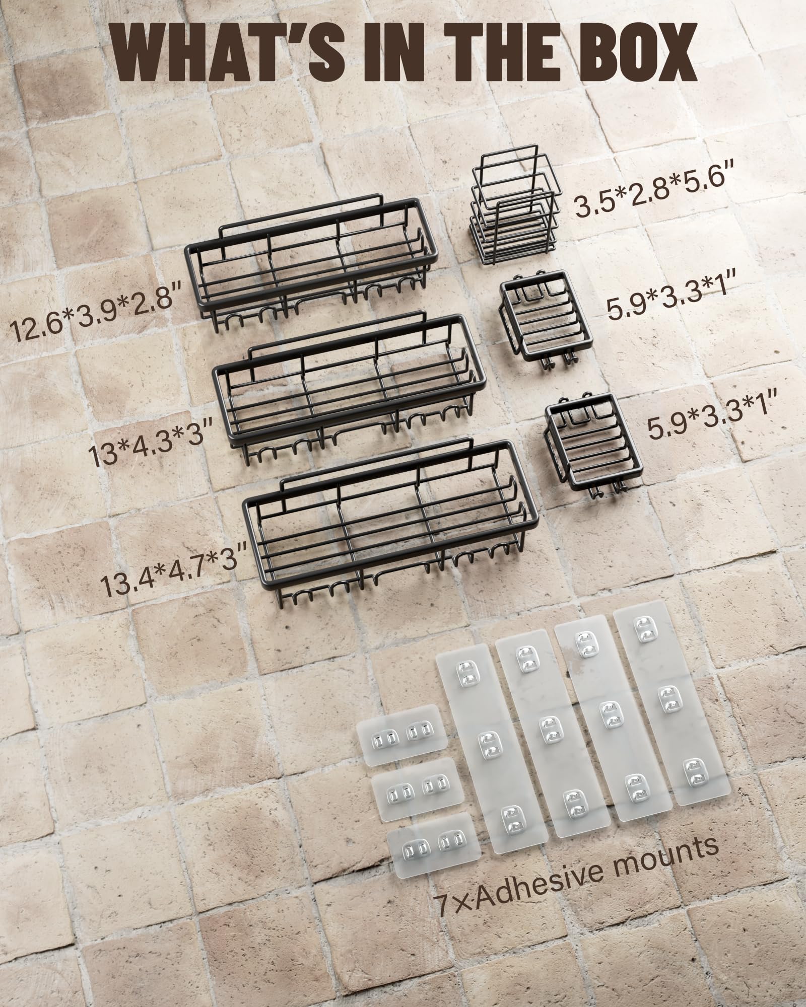• Comprehensive Organization: This 6-piece set includes large, medium, and small caddies, along with soap and toothbrush holders, providing versatile storage for all your shower essentials