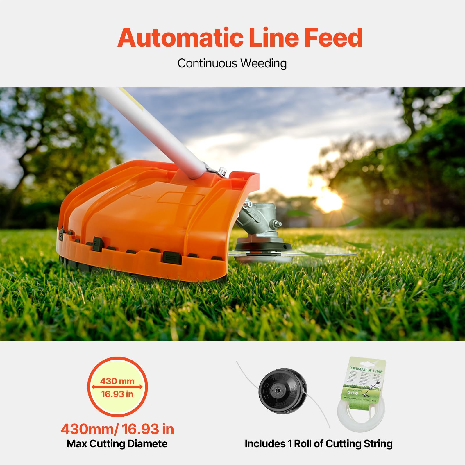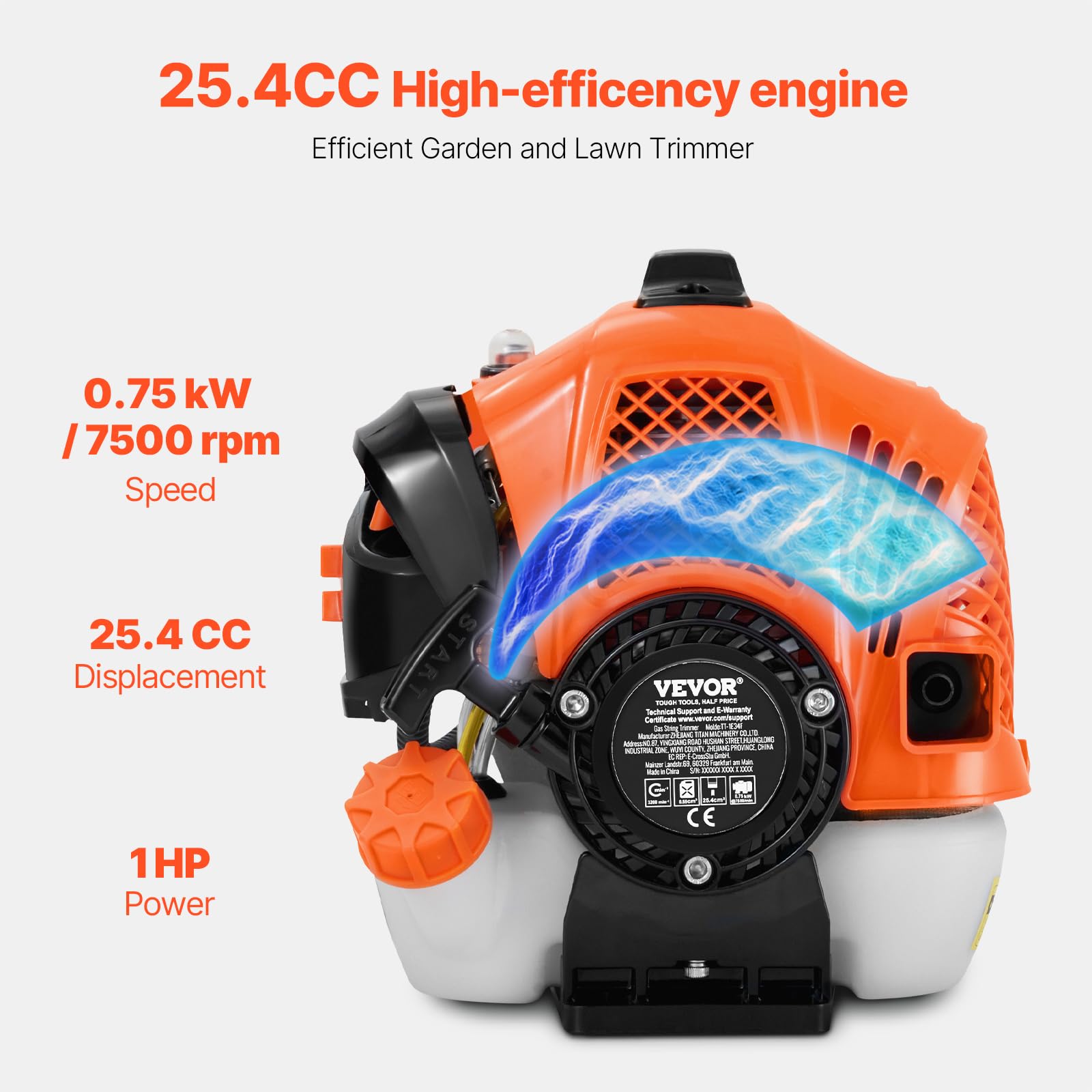- Powerful Performance: The efficient 25.4cc two-stroke engine provides 1.2 horsepower with a maximum speed of 7500 rpm, enabling the string trimmer to handle various grasses quickly and improve work efficiency.